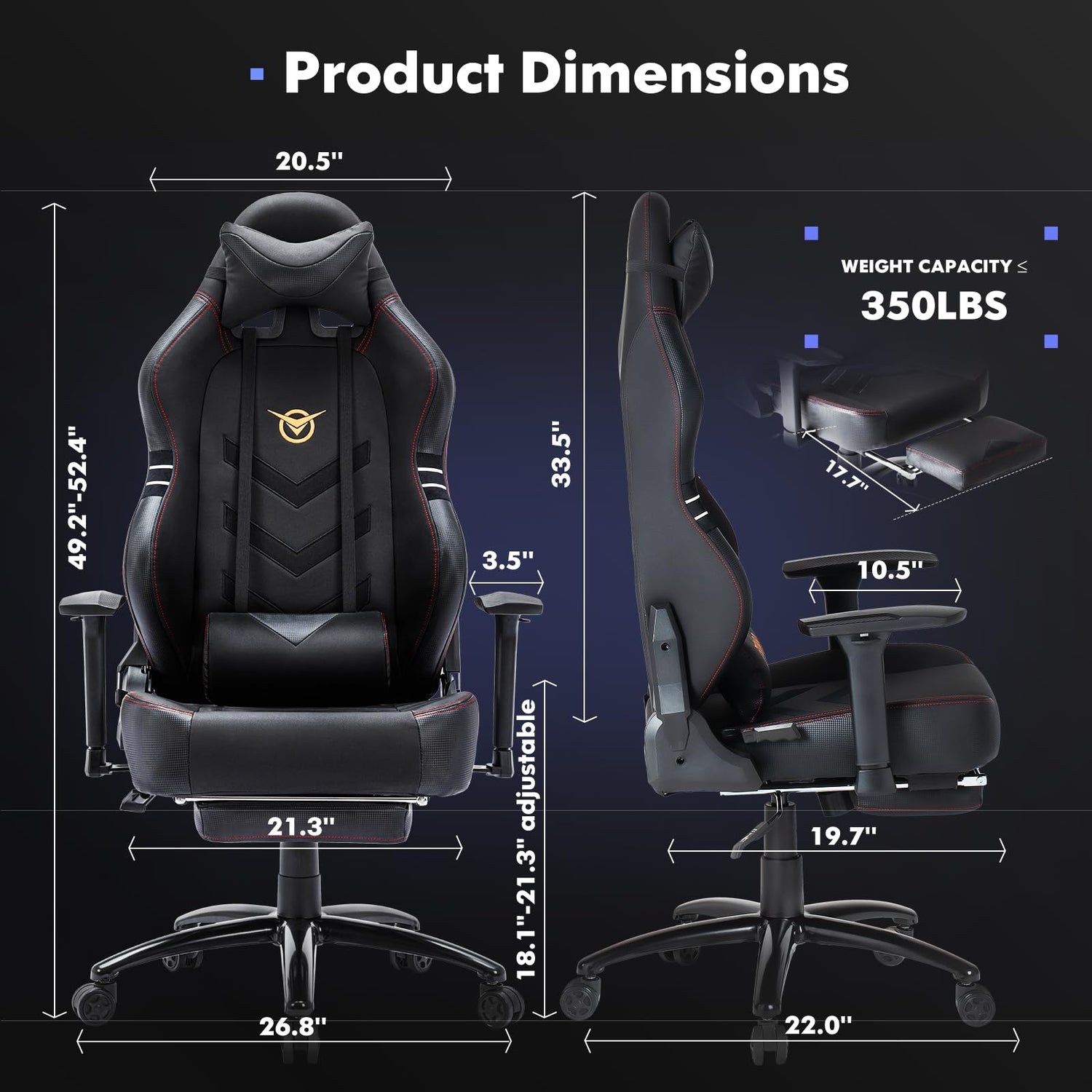 Big and Tall Gaming Chair with Footrest 350lbs, Computer Gamer Chair, High Back PC Gaming Chairs with Wide Seat, Lumbar Support, Armrest for Adults-Black