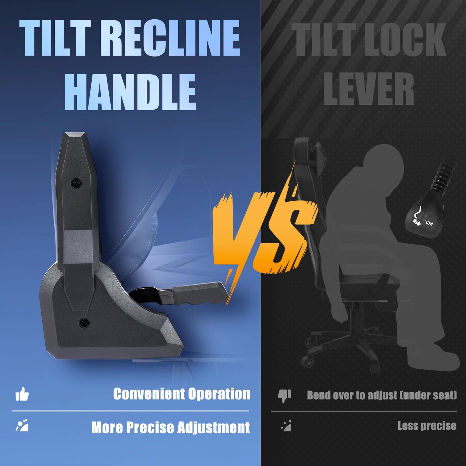 - ⏩ERGONOMIC & ADJUSTABLE DESIGN-90° to 150°backrest adjustment and adjustable seat height, suitable for a variety of scenarios, it can be used as an office chair, reclining chair, or swivel chair. Ergonomically designed with lumbar and headrest pillows that provide tailor-made comfort. Underneath tilt tension knob controls the tension of reclining, you can modify it to fit your personal preferences