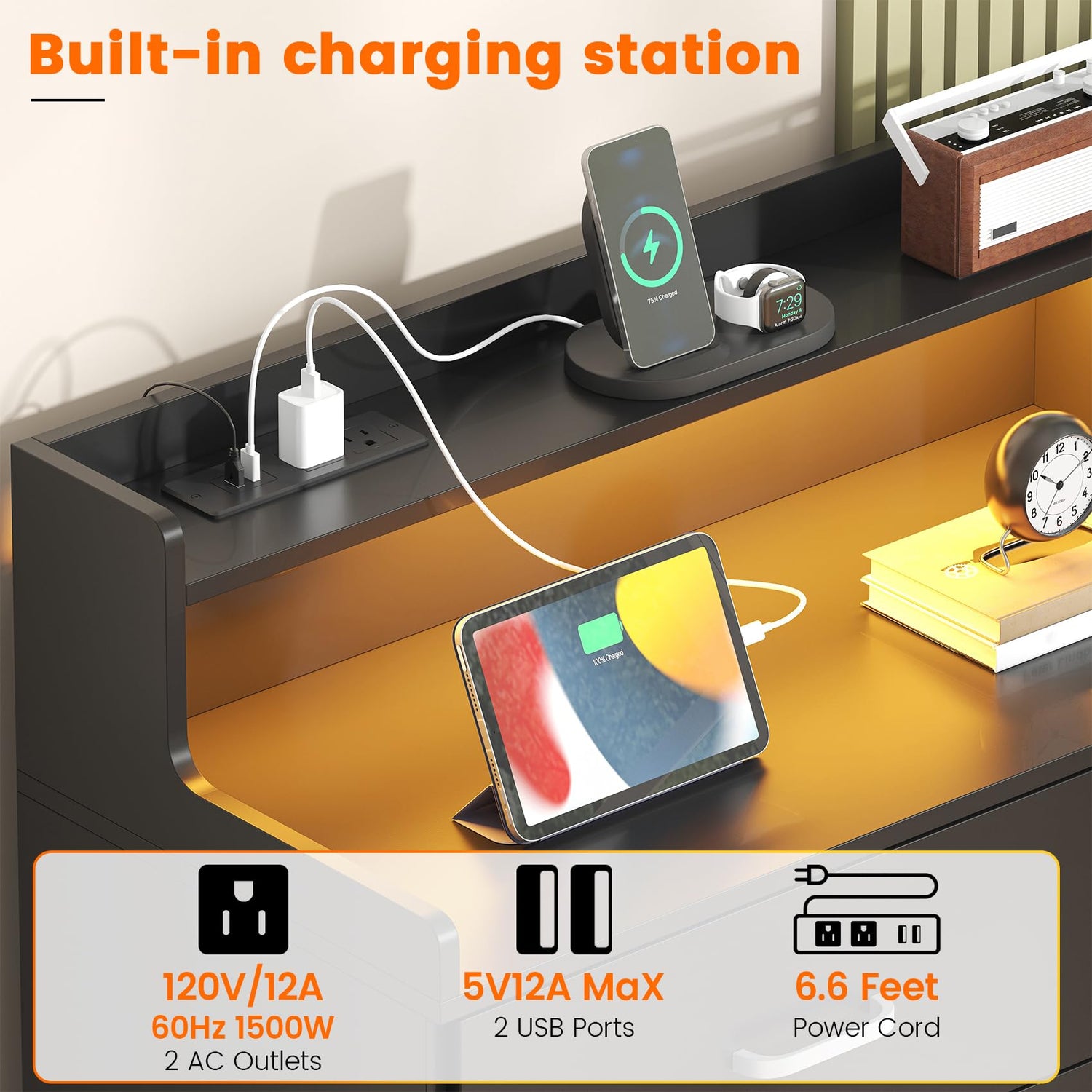 - Multi-Functional Dresser with Integrated Charging Station: This stylish bedroom dresser combines practicality with modern convenience, featuring a built-in charging station equipped with 2 AC outlets and 2 USB ports. Effortlessly power your laptop, smartphone, table lamp, hairdryer, and other small appliances directly from the dresser—eliminating the need for extra adapters or extension cords.
