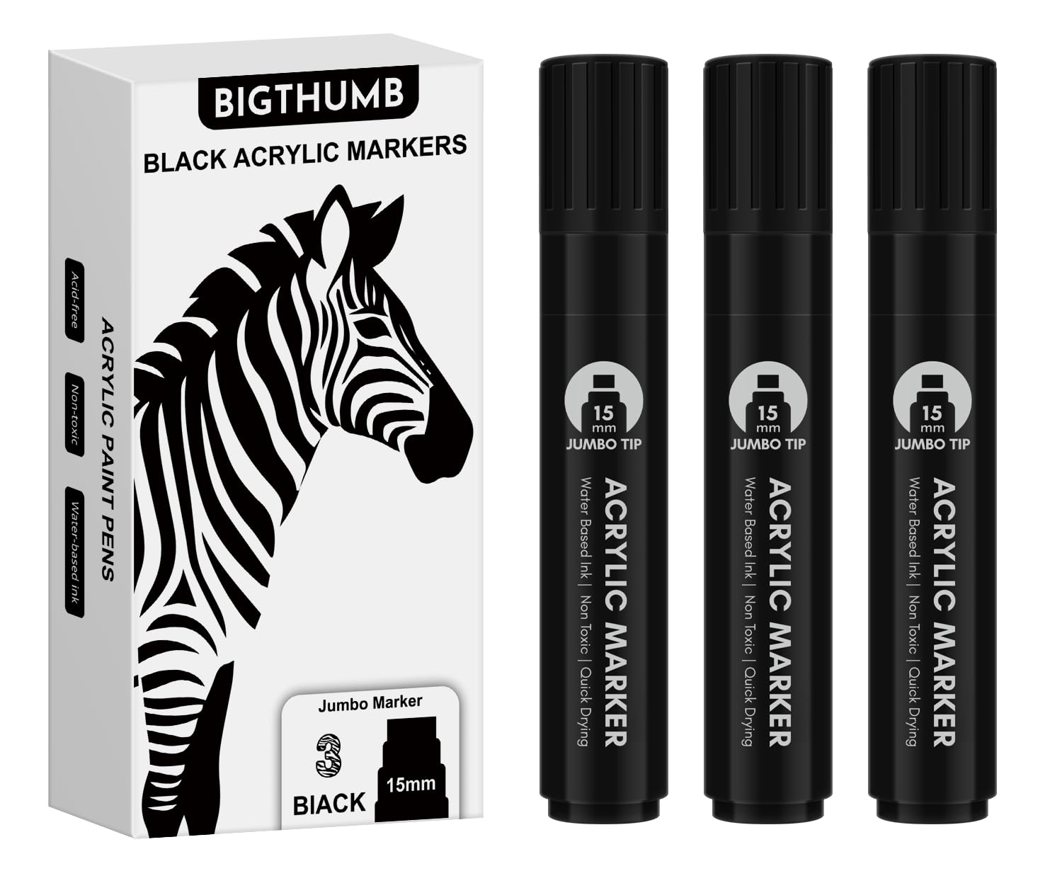 - Jumbo Permanent Markers Black Set: BIGTHUMB jumbo black markers are made with the highest-quality non-toxic, acid-free, no odor, no-leakage water-based acrylic ink that is waterproof, quick dry, long-lasting, and smooth ink flow. Each fat permanent marker conforms to ASTM d-4236 and EN-71 safety standards.