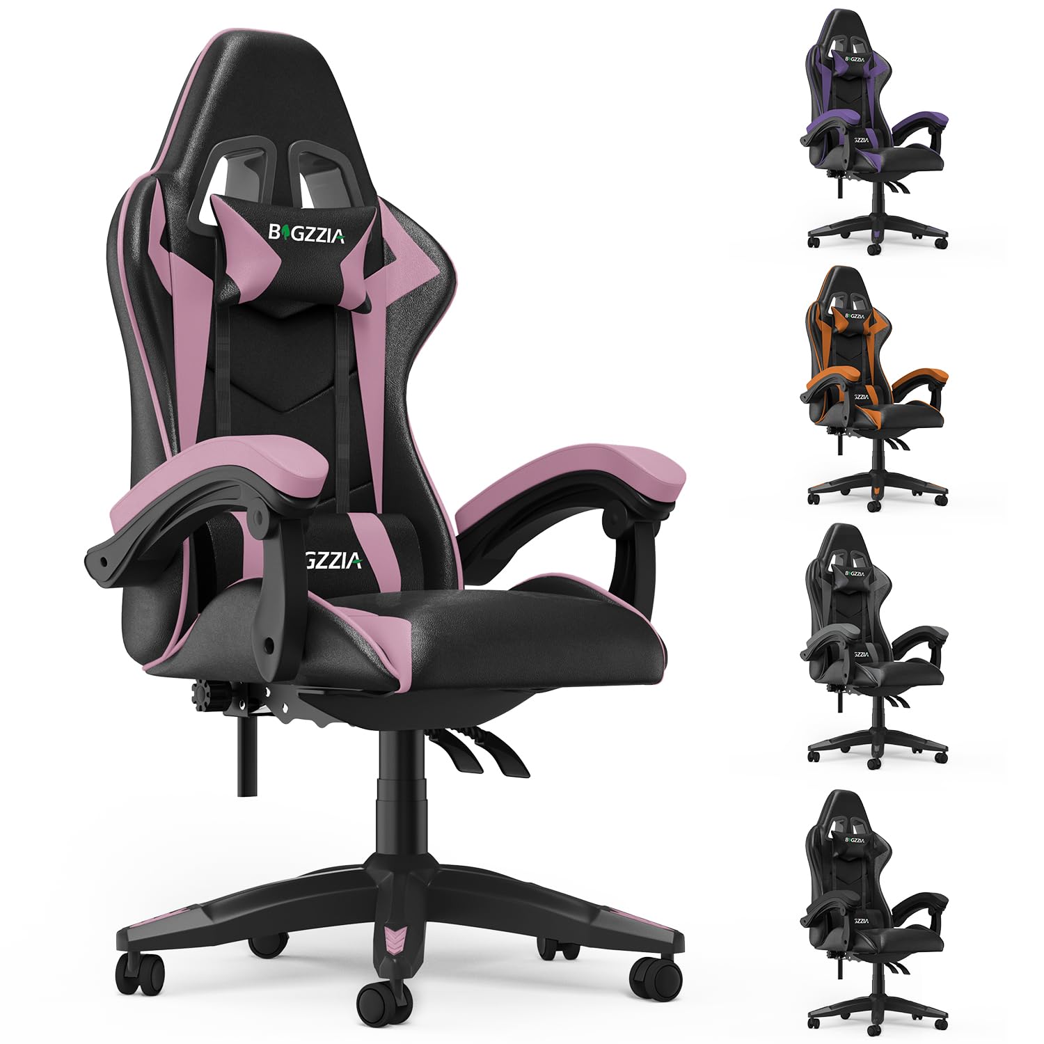 Bigzzia Gaming Chair, Ergonomic Video Game Chairs with Pillow and Lumbar Support, Racing Style Height Adjustable Computer Chair with 360°-Swivel Seat for Adults(Black/Pink)