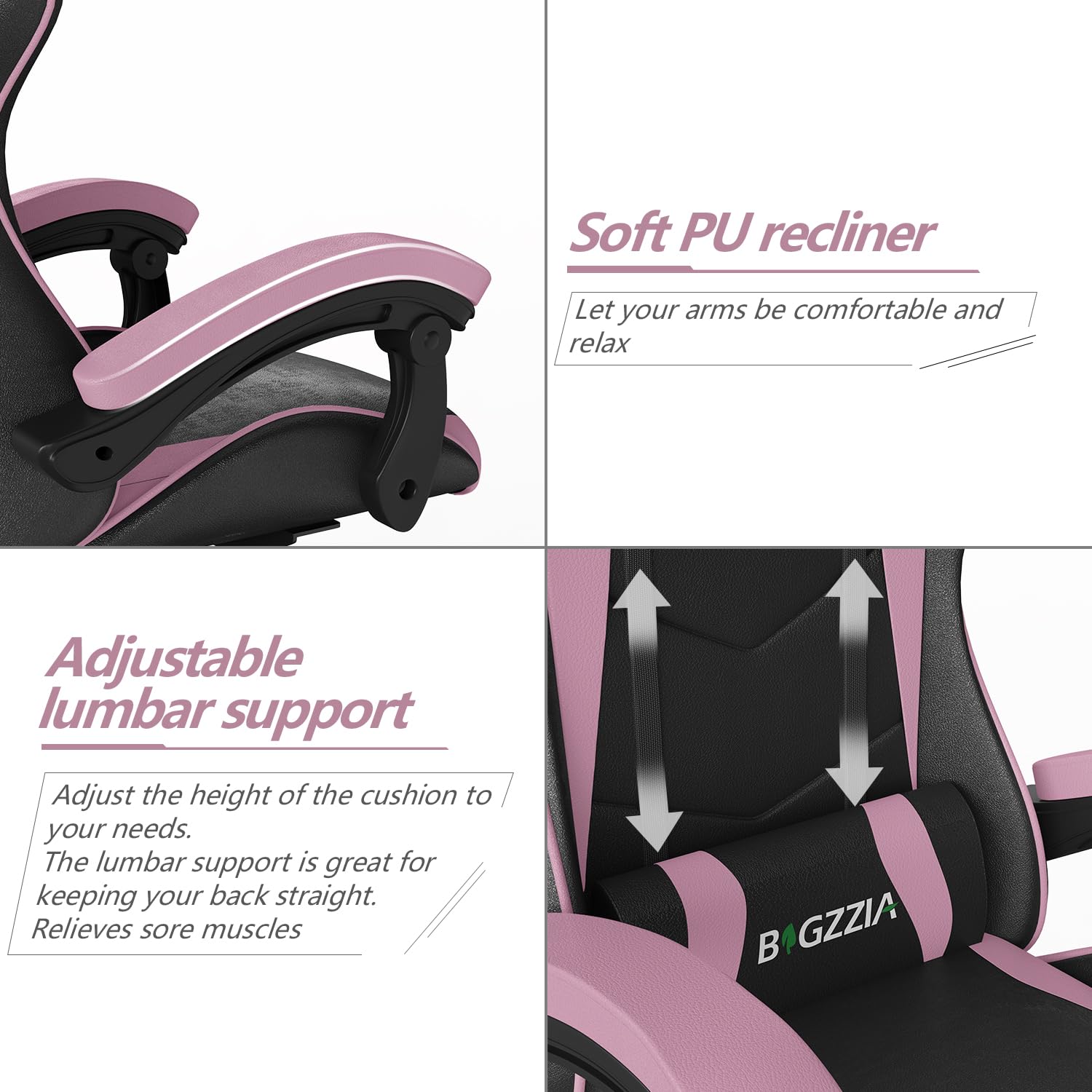 - 【Comfortable Ergonomic Video Game Chair】 Experience unparalleled comfort with our Bigzzia gaming chair, designed with lumbar support, and neck pillow to promote a healthy posture during racing gaming sessions.