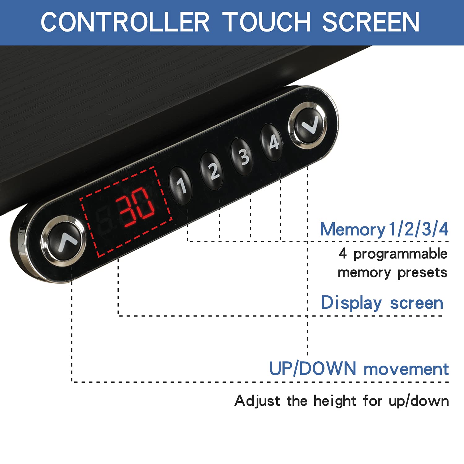 - Advanced Keypad: The electronic keypad allows you to not only raise or lower the ergonomic desk but also to save up to 4 commonly used desk heights, set minimum and maximum heights and lock the desk at the desired height.