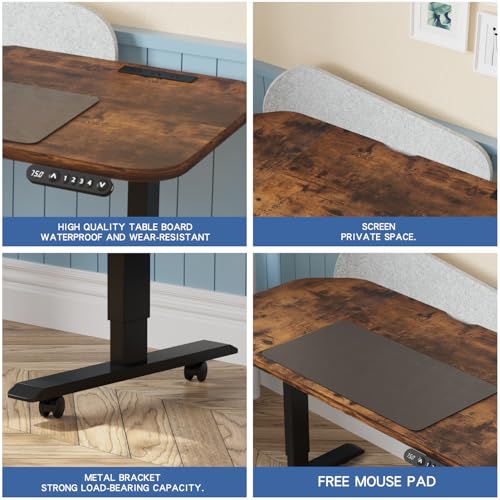 bilbil L-Shaped Electric Standing Desk with Power Strip & Privacy Screen(Gray), 59 Inch Workstation, Large Mouse Pad & 4-Preset Memory Buttons, Quiet Adjustable Desk for Dual Monitors(Rustic Brown)