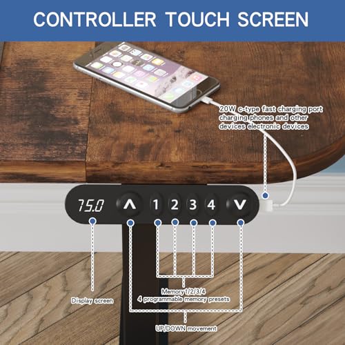 - 【4 Programmable Memory Presets】 To save the current height setting: Press and hold any number key until you hear a beep. Long press the up key and "M4" to change the unit from cm to inch.