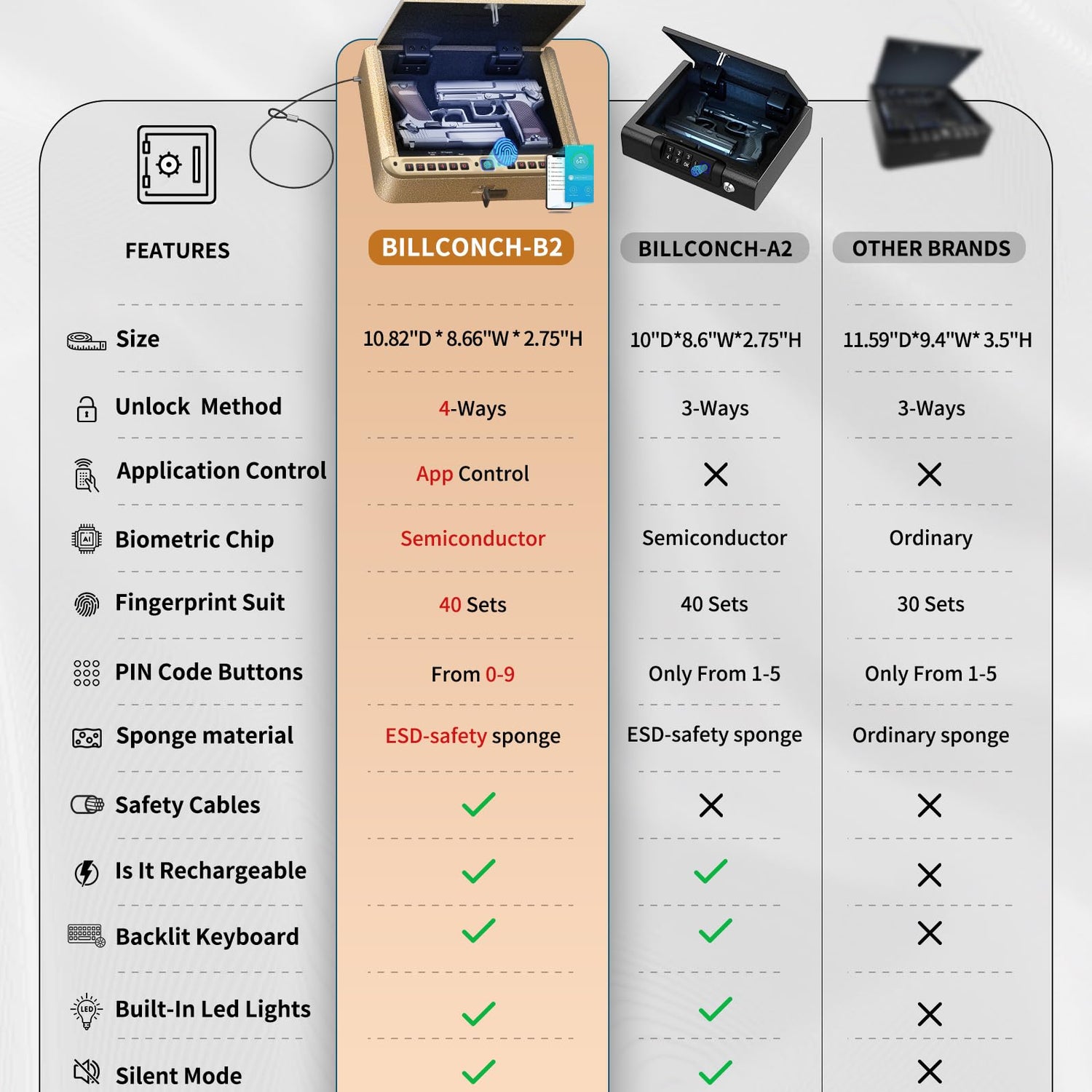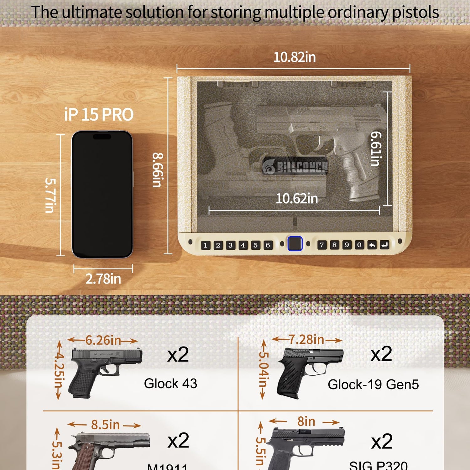 - 5-Star After-Sales Service: We are committed to providing top-notch intelligent gun safes to Protect your home! If you are not satisfied with the quality of the pistol safe product, or the results do not meet your expectations, please contact us through Amazon within the 365-day warranty period and we will provide you with exceptional service and support, including refunds or replacements and more. Rest assured that BILLCONCH's team of handgun safe professionals is always willing to help