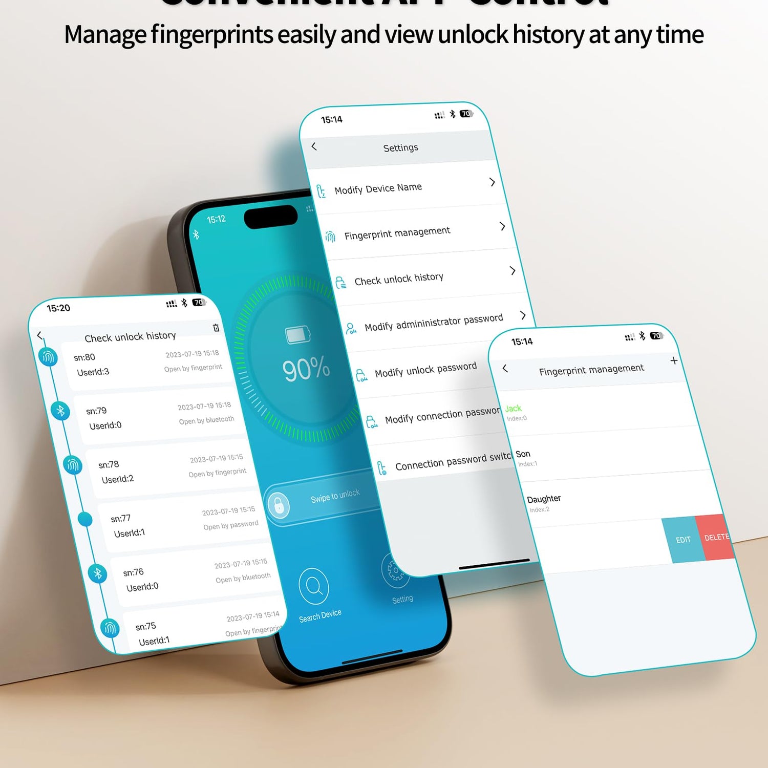 - Convenient App Operation: Simply connect with your phone APP and slide the screen to unlock the gun safes with one click quickly. You can check the remaining battery power in real-time and easily manage fingerprints, add/delete at will, and a safe box set up to 40 fingerprints. View the unlocking record of the user ID at any time to keep track of the unlocking situation. Administrator, unlocking, and connection passwords can also be easily changed to keep the pistol safe under your control
