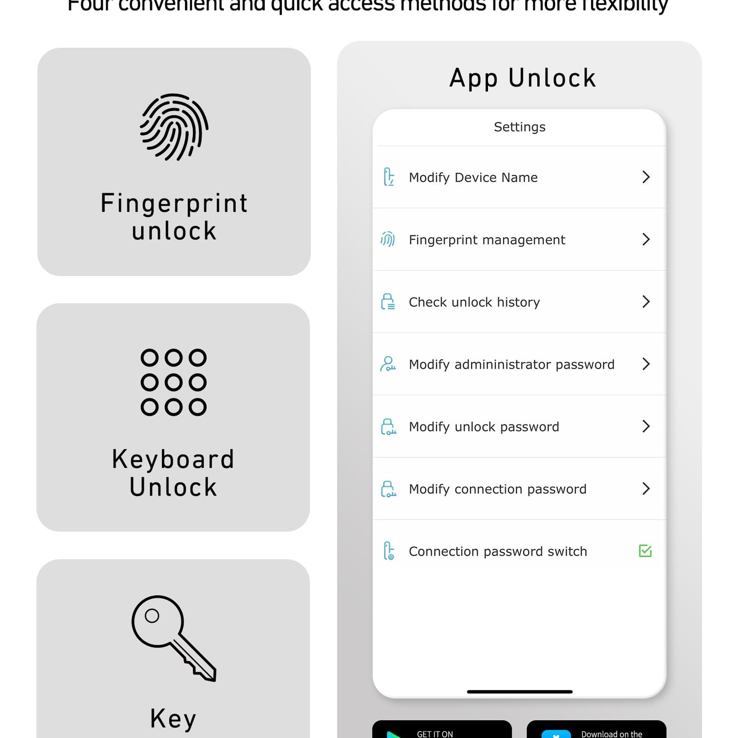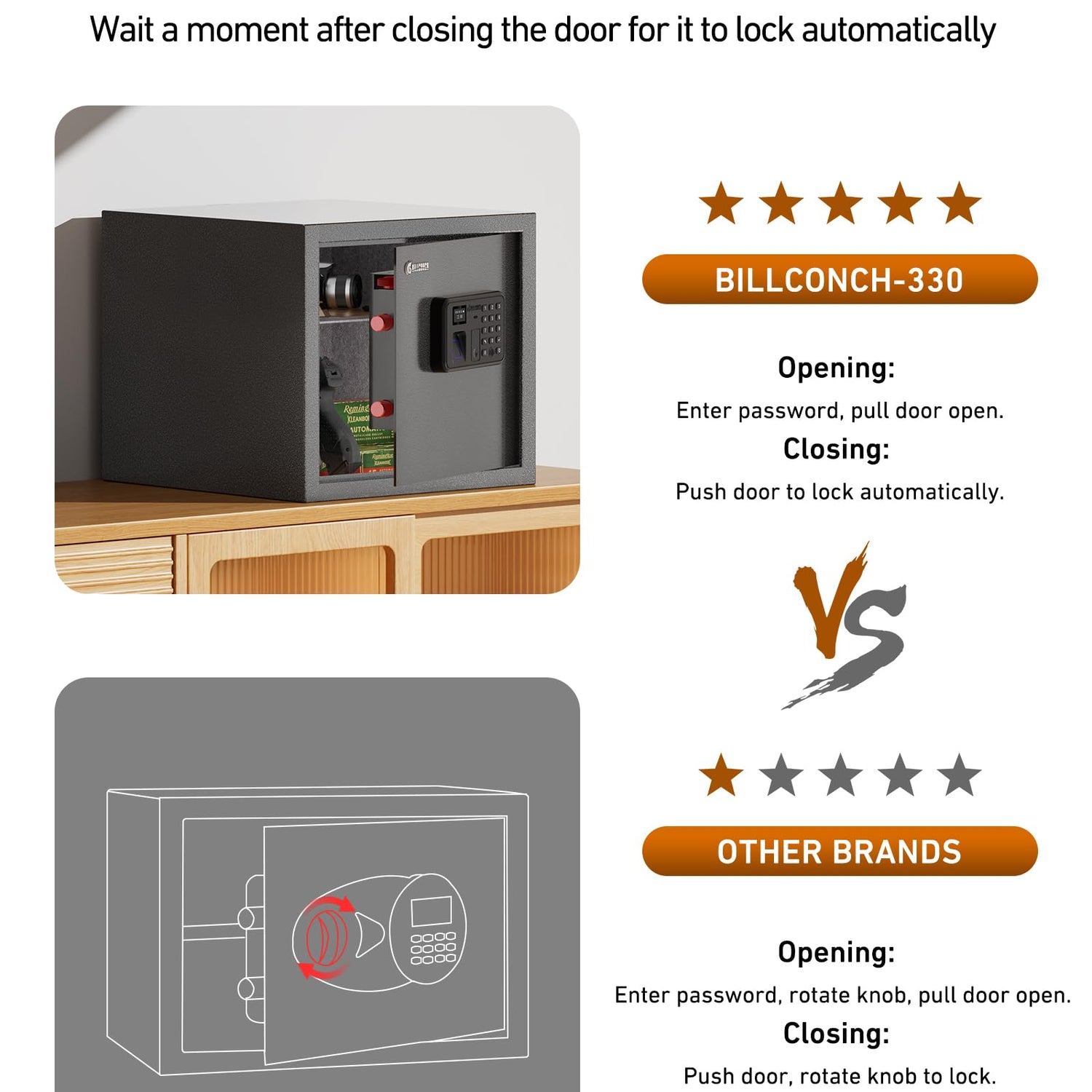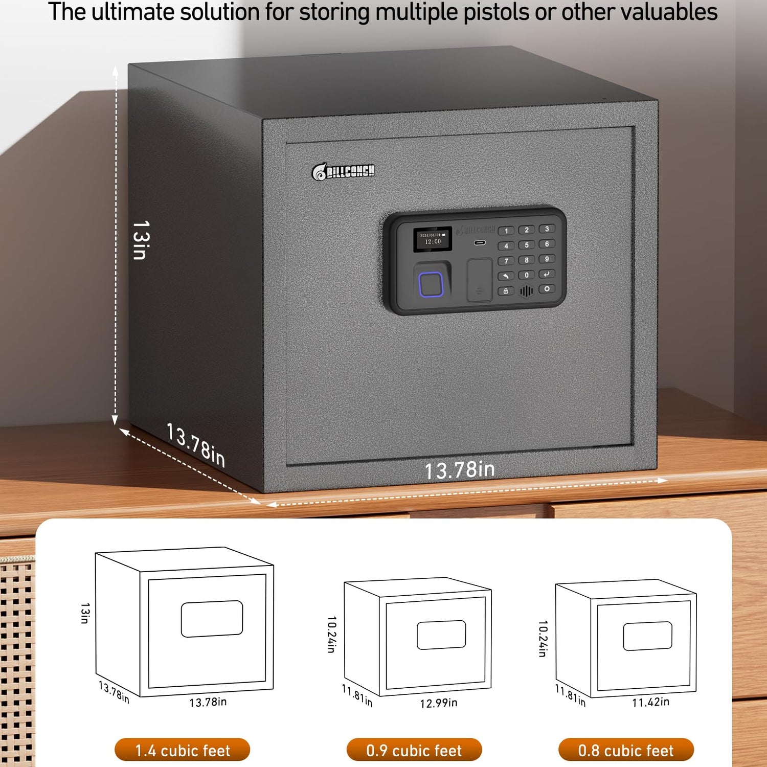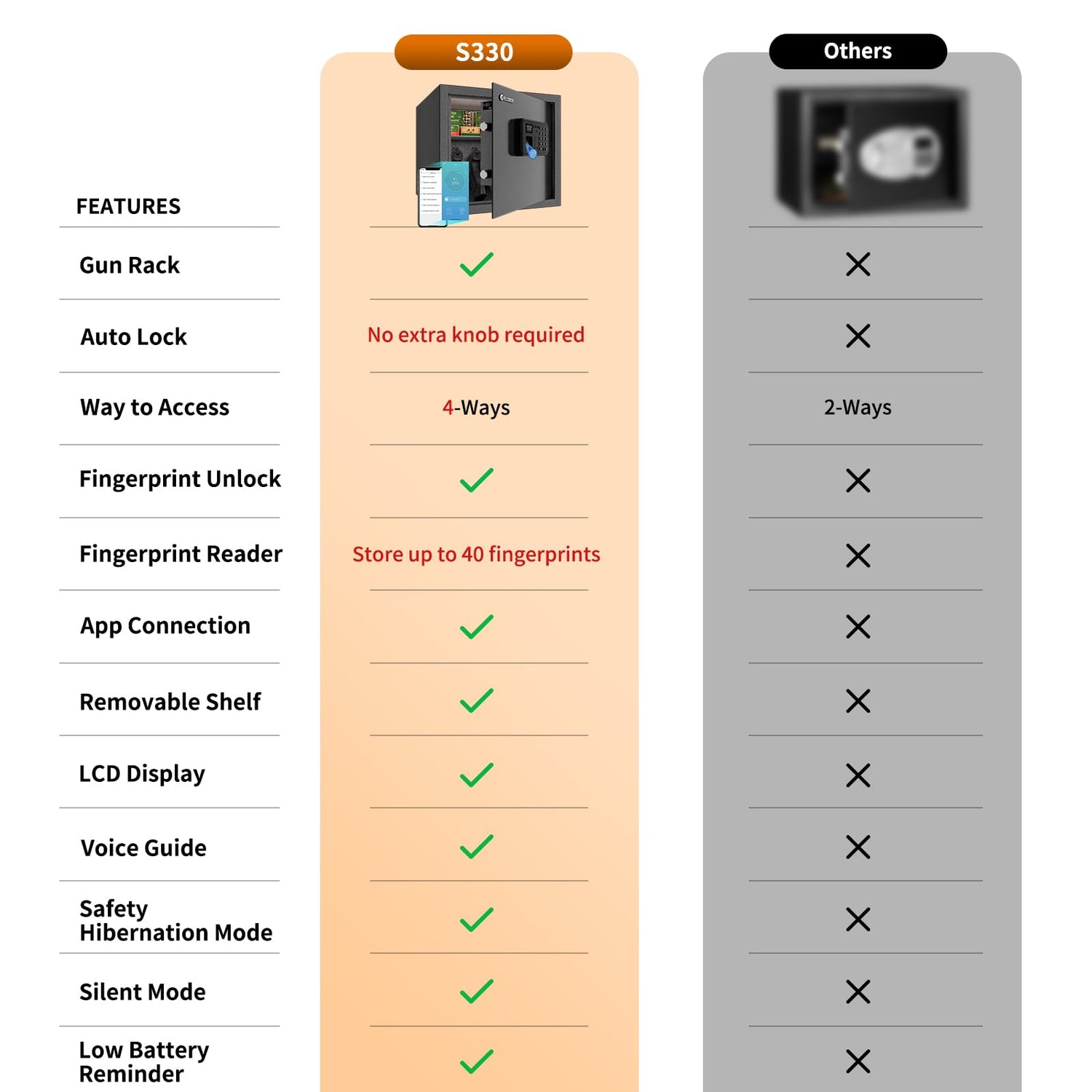 - Fingerprint Recognition: Biometric safe uses high-quality fingerprint biometric technology, seconds fast recognition speed and record 40 sets of fingerprints. You can also connect smart phone, the safe can be unlocked by smart phone