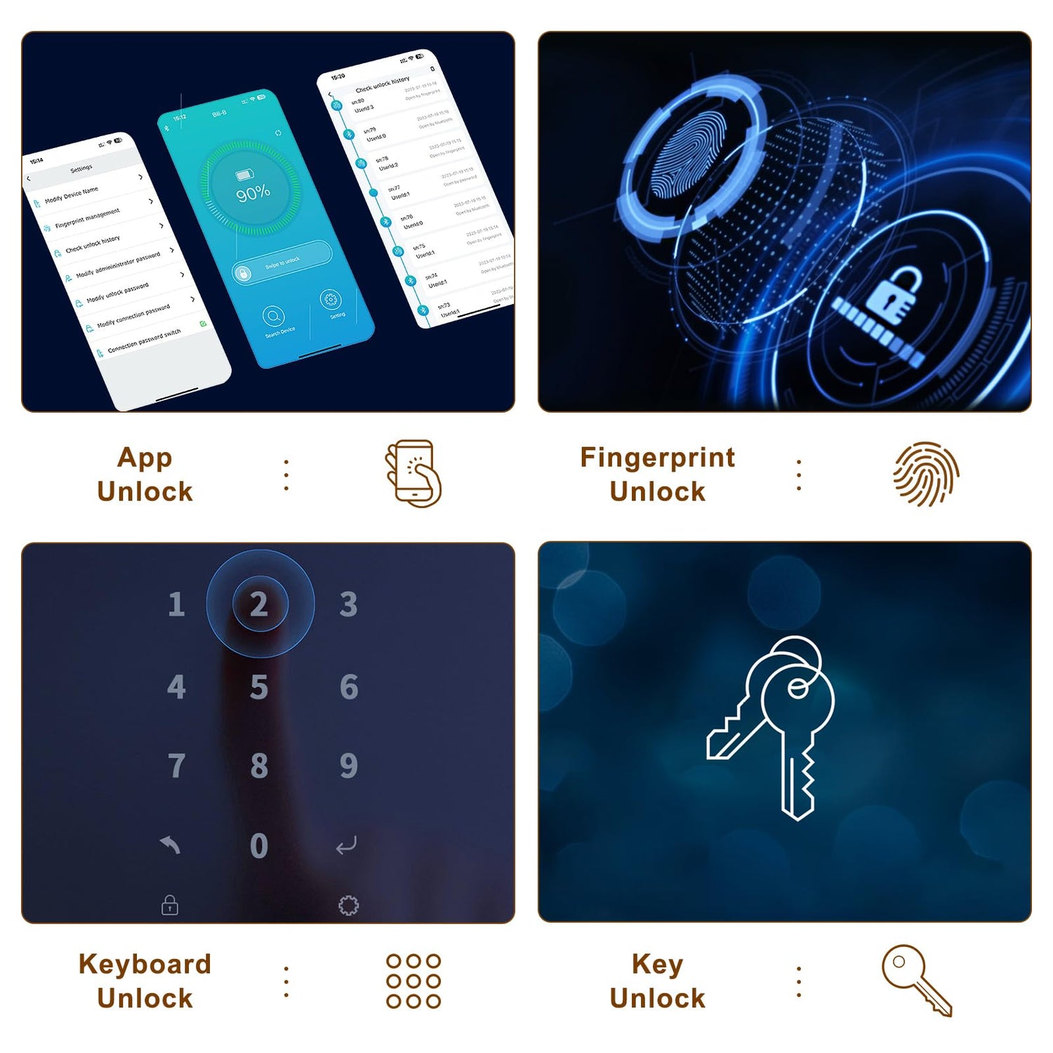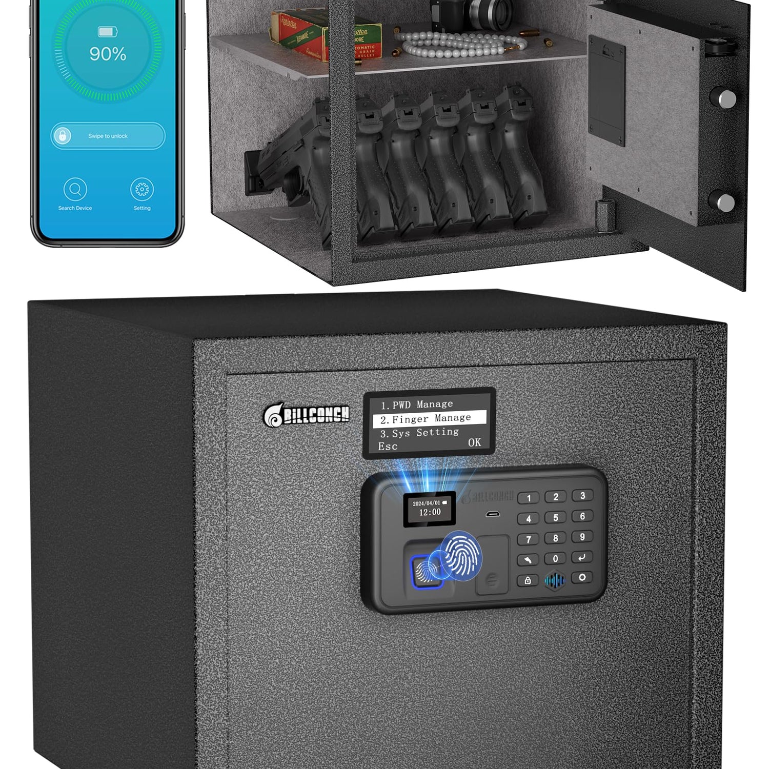 - 4 Fast Unlock Methods: Access the biometric safe quickly with fingerprint, PIN, app, or key. High-resolution fingerprint scanning unlocks the safe in 1 second, and numeric keys 0-9 enhance security. The app enables easy management of settings, passwords, and unlock records, offering flexible and rapid access for emergencies