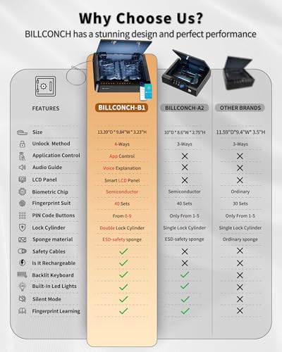 - 5-Star After-Sales Service: We are committed to providing top-notch intelligent gun safes to Protect your home! If you are not satisfied with the quality of the pistol safe product, or the results do not meet your expectations, please contact us through Amazon within the 365-day warranty period and we will provide you with exceptional service and support, including refunds or replacements and more. Rest assured that BILLCONCH's team of handgun safe professionals is always willing to help