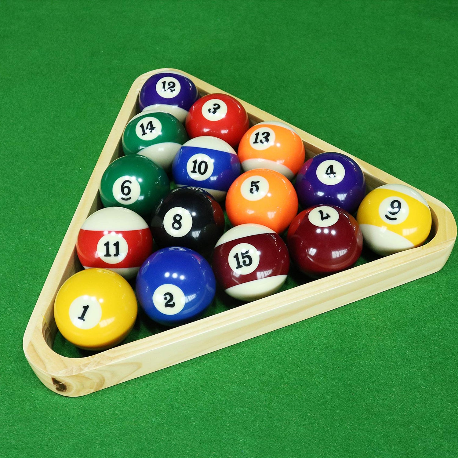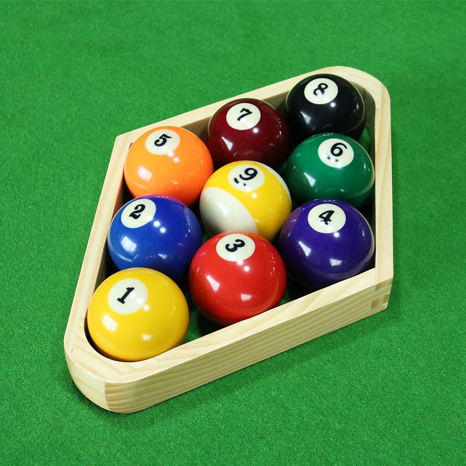 Billiard Balls Set, Pool Table Triangle Ball Rack and 9-Ball Diamond Rack (Wood), 5 Cue Chalks and 2 Table Spot Stickers - Pool Table Accessories