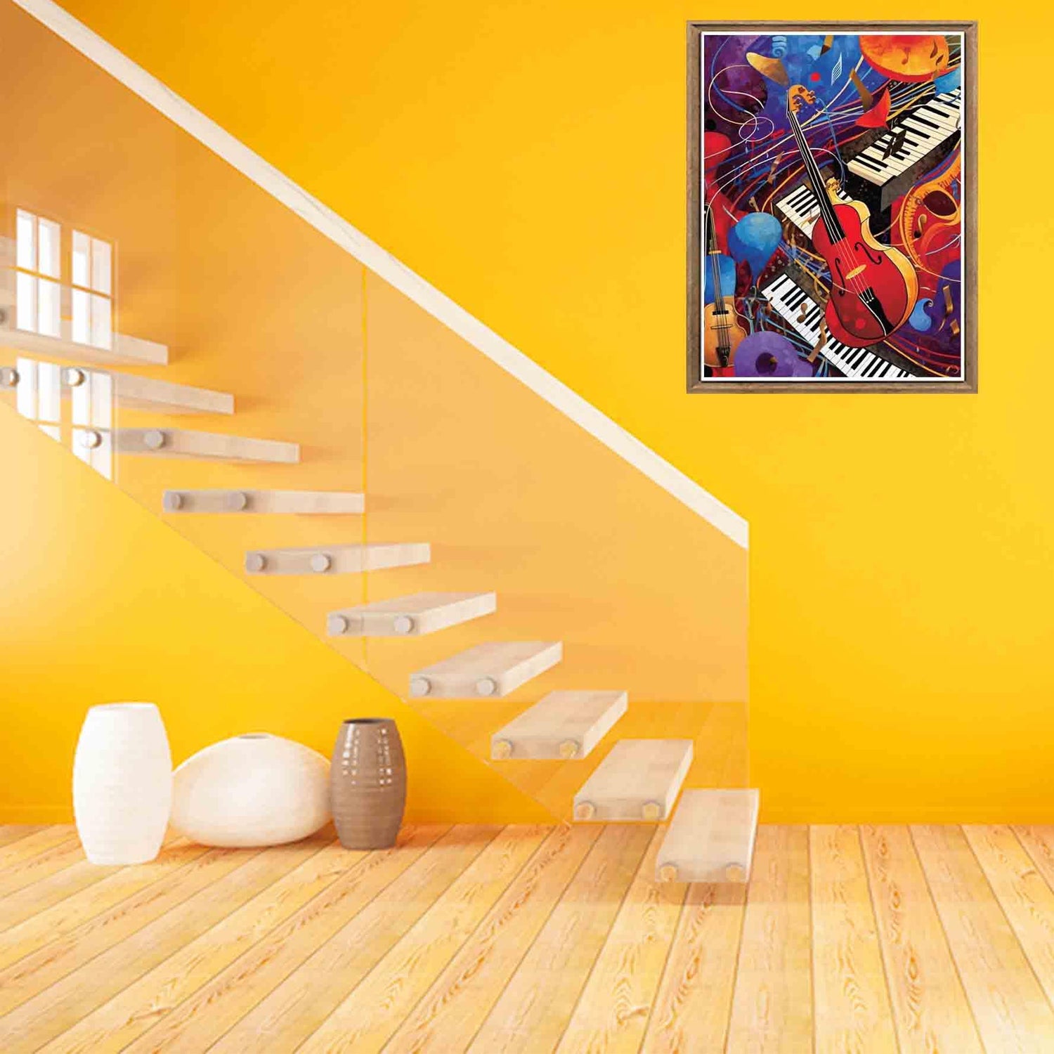 Bimkole 5D Diamond Art Kits for Adults Guitar Piano, Full Drill Musical Notes DIY Rhinestone Embroidery Set Paint with Diamonds Art by Number Kits Cross Stitch Home Wall Craft Decoration 12X16 Inch