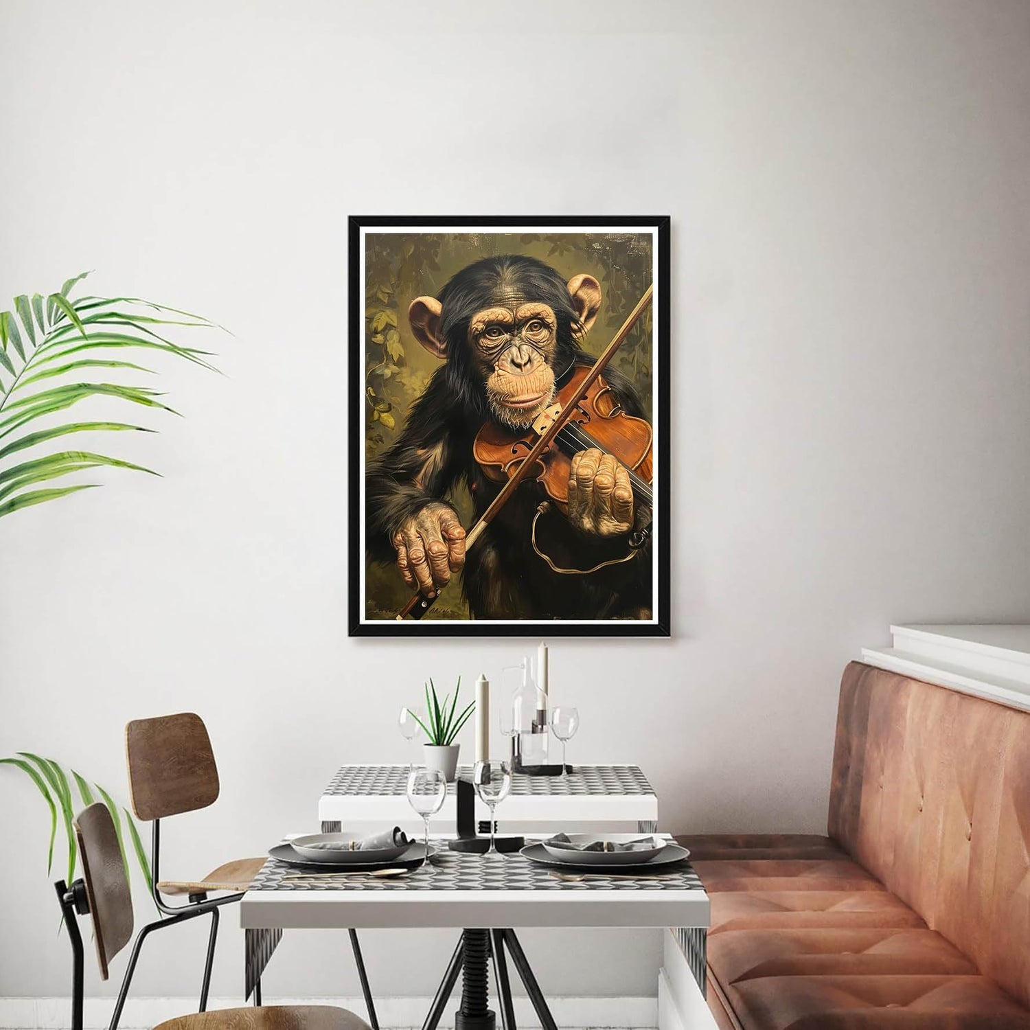 Bimkole 5D Diamond Art Kits for Adults Monkey Playing Violin, Full Drill DIY Rhinestone Embroidery Set Paint with Diamonds Art Animals by Number Kits Cross Stitch Home Wall Craft Decor 12x16 Inch
