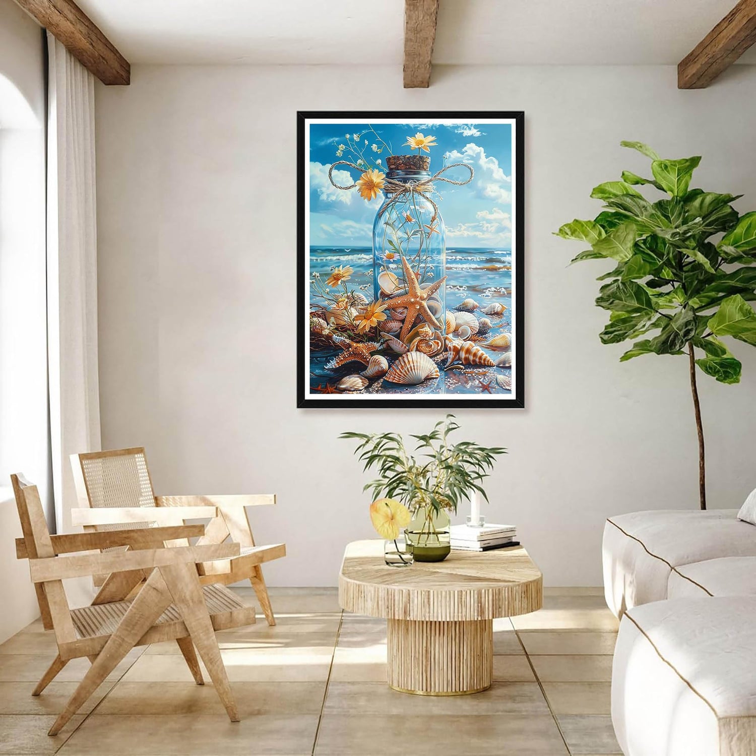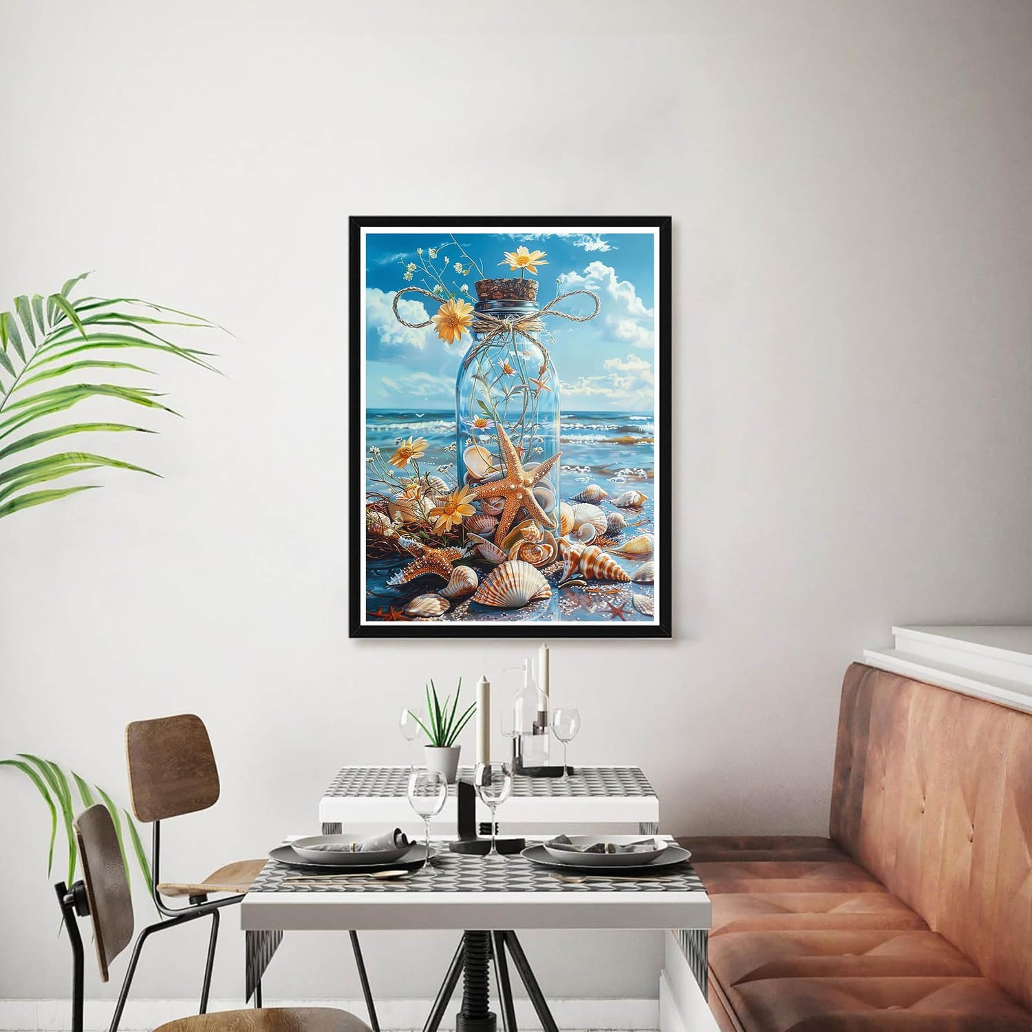 Bimkole 5D Diamond Art Kits for Adults Shell, Full Drill DIY Rhinestone Embroidery Set Paint with Diamonds Art Bottle on The Beach by Number Kits Cross Stitch Home Wall Craft Decoration 12x16 Inch