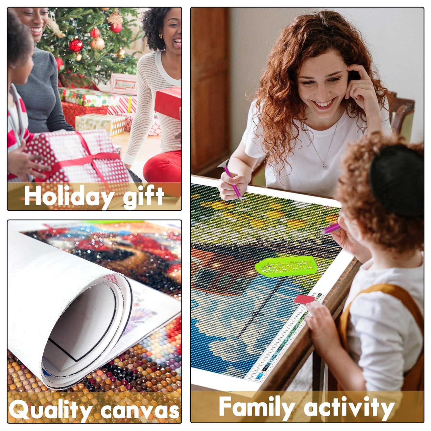 - GREAT QUALITY: Crafted from high-clear printing oil canvas, our DIY diamond arts canvases are wrinkle-free and possess an even texture. The pattern features a naturally adhesive background protected by a layer, facilitating the seamless completion of the picture as the gems securely adhere to the diamond canvas
