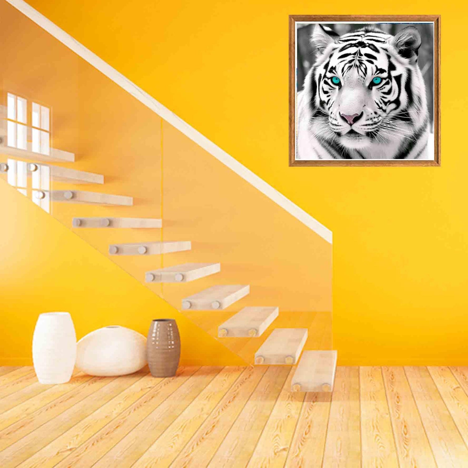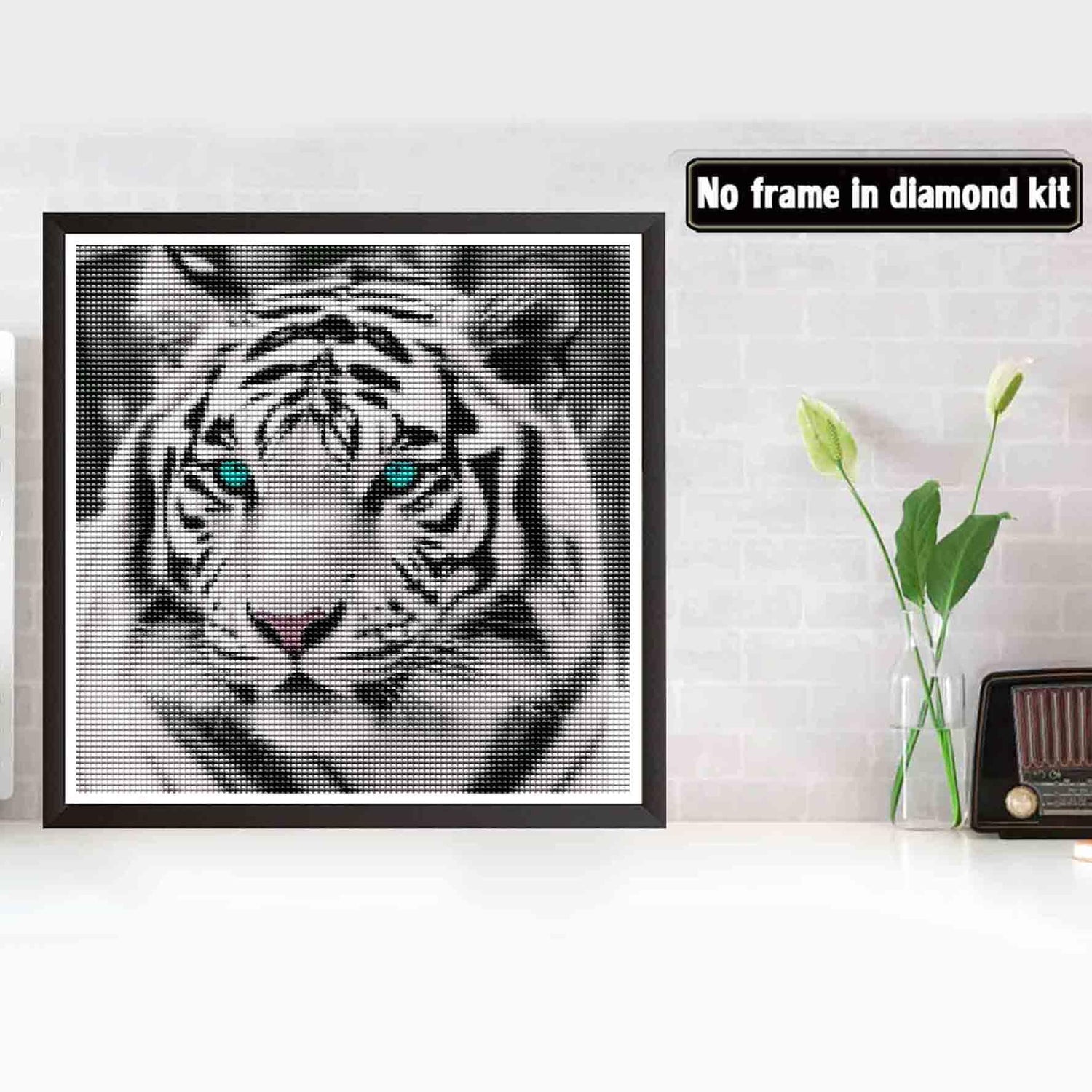 Bimkole 5D Diamond Painting Kits Blue-Eyed White Tiger, Full Drill Animals DIY Rhinestone Embroidery Set Paint with Diamonds Art by Number Kits Cross Stitch Home Wall Craft Decoration 12X12 inch