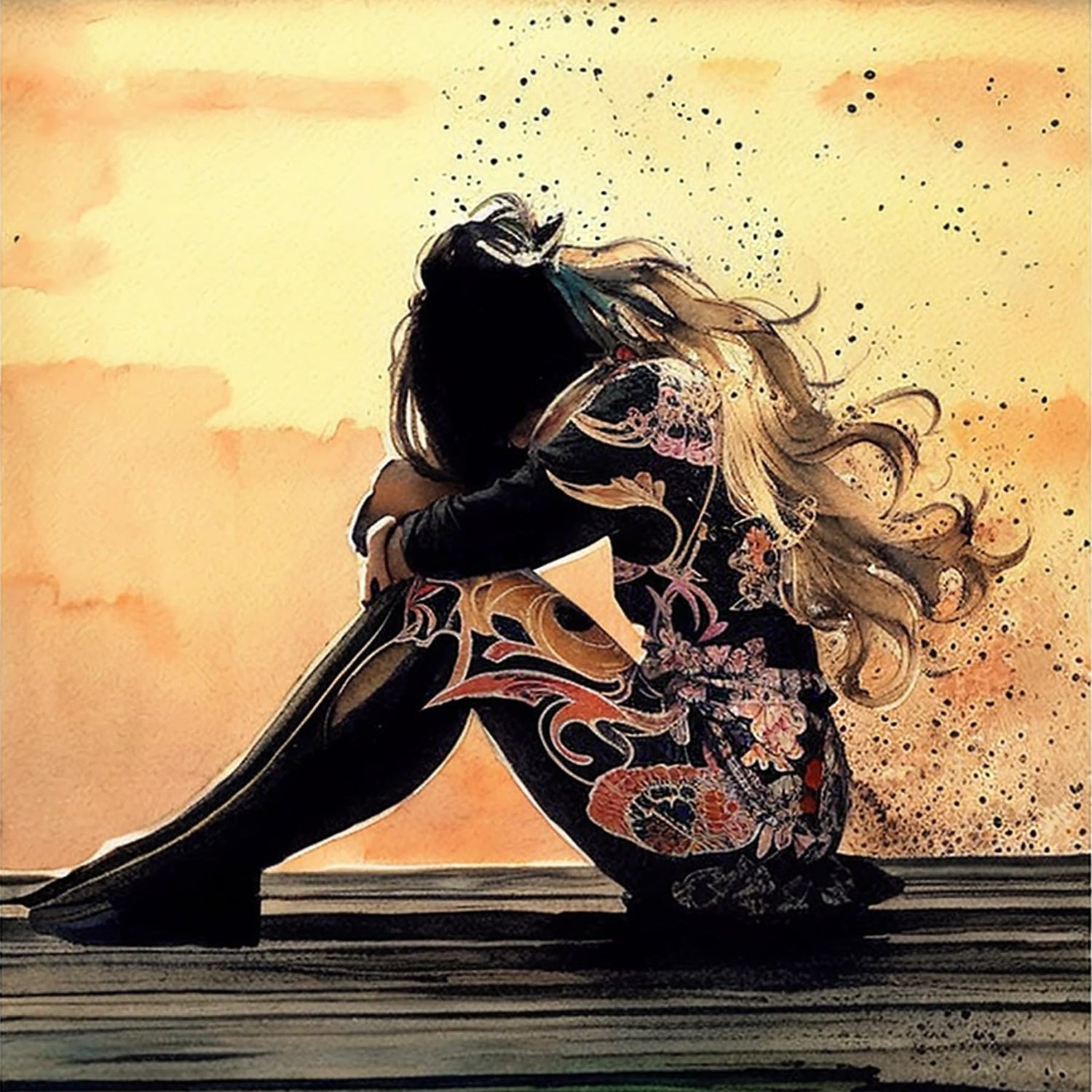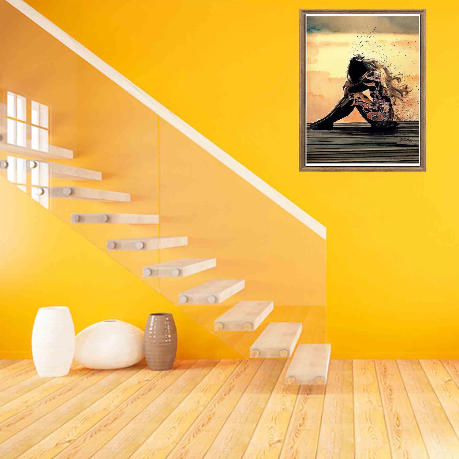 Bimkole 5D Diamond Painting Kits Lonely Sad Woman, Full Drill Beauty Sunset DIY Rhinestone Embroidery Set Paint with Diamonds Art by Number Kits Cross Stitch Home Wall Craft Decoration (12x16inch)