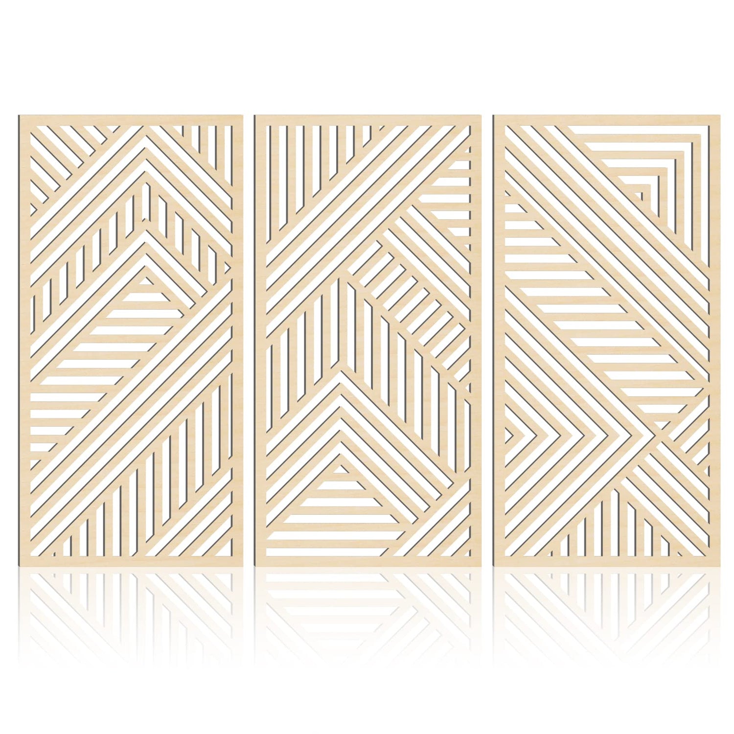 BINCUE Geometry Boho Wood Wall Art 3 Panel with 3D Hollow Craft Art for Kitchen & Bathroom & Living Room & Office Decor Hanging Wall Art Decor