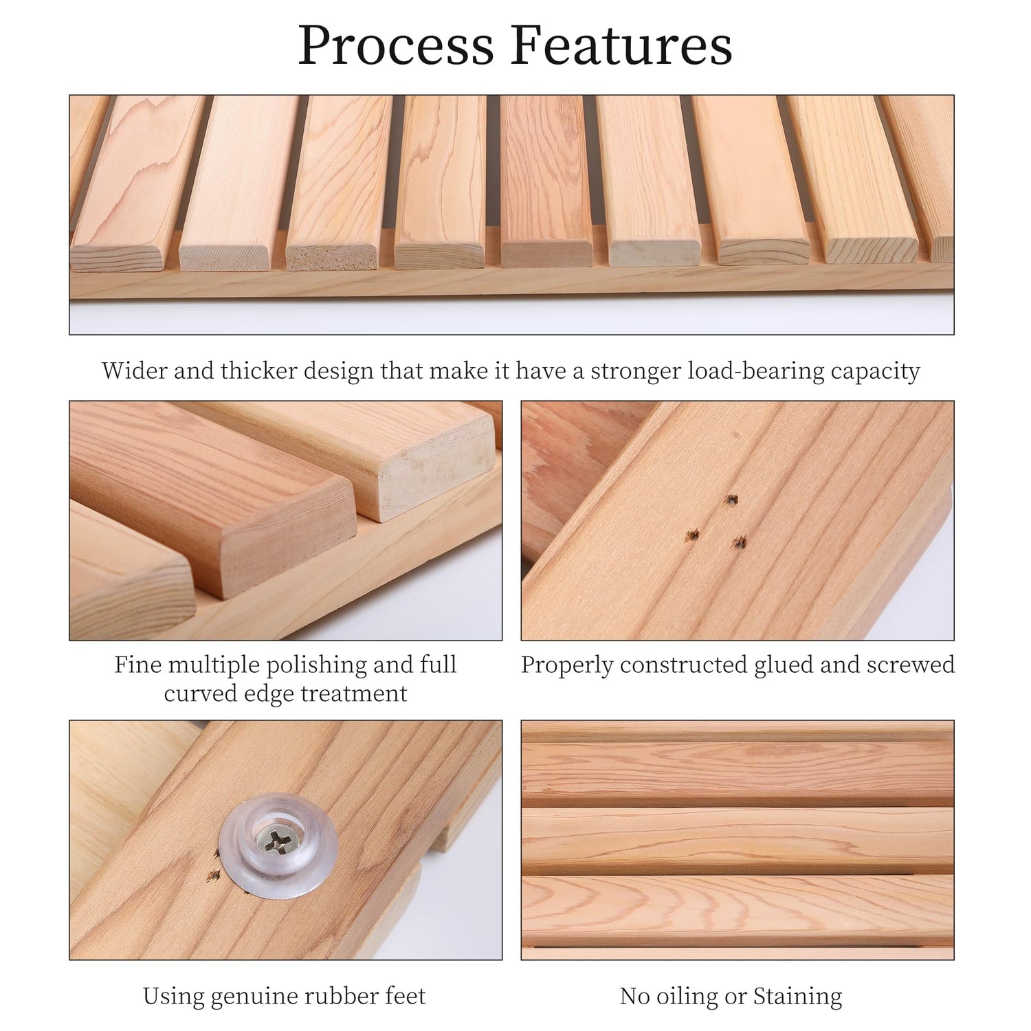- Durable design: bingaai cedar shower mats use wider and thicker designs that make them have a stronger load-bearing capacity. Fine multiple polishing and full curved edge treatment make the foot feel more comfortable. Our cedar shower Mats have no Oiling or Staining and are natural and environmental protection.