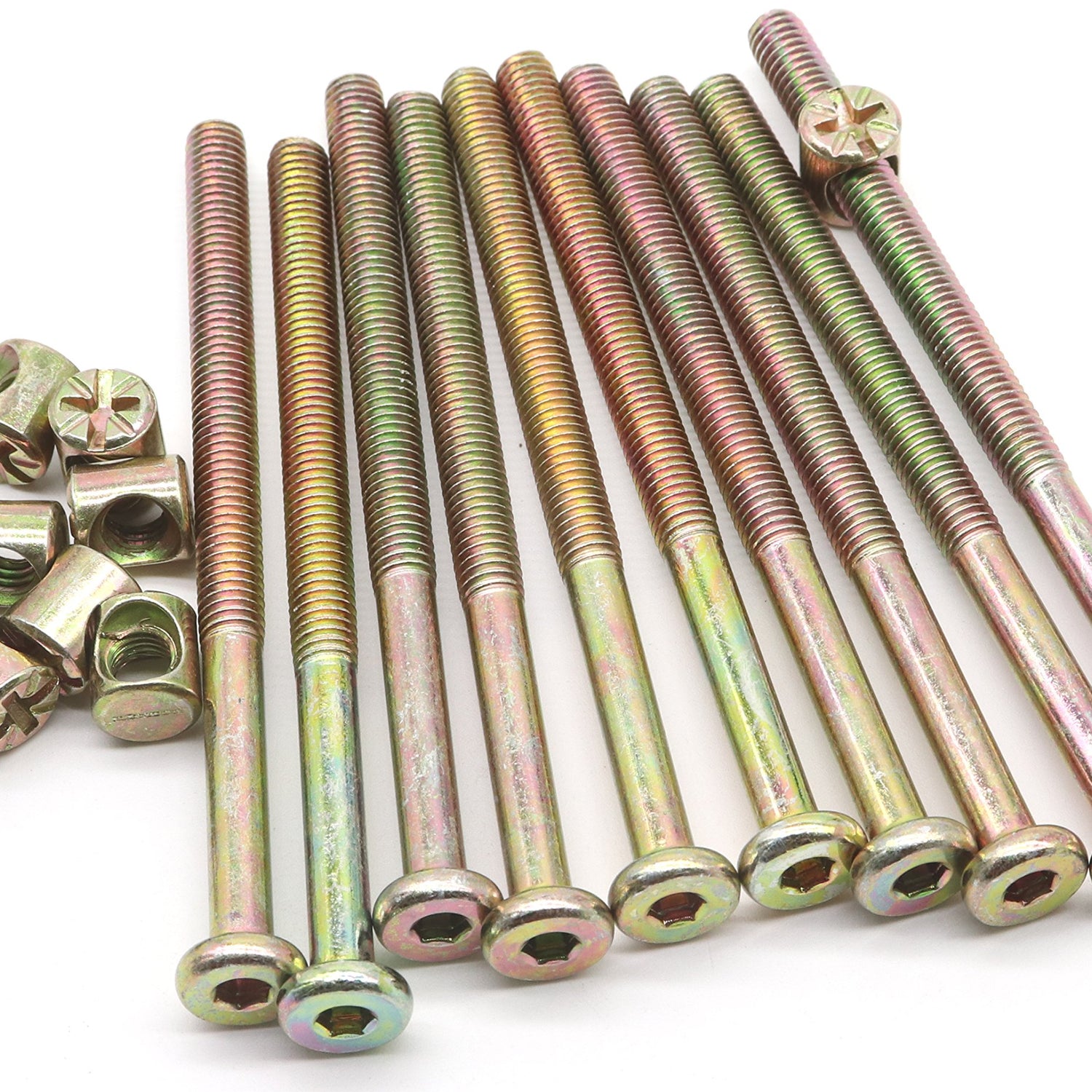 binifiMux 10-Pack M6 x 90mm Hex Allen Head Furniture Crib Baby Bed Bolt and Barrel Nuts, for Bunk Bed Chairs Cots Headboard