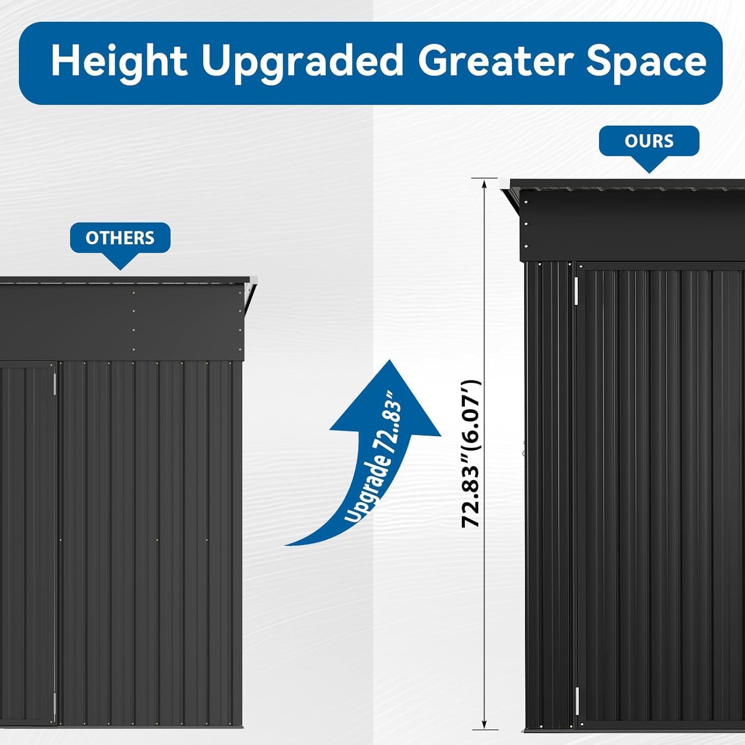 Details: 7.5'x4' Shed Galvanized Steel Storage Sheds with Triple Doors Weatherproof Outdoor Utility Sheds, Dual Lock Lean to Shed with Sloped Roof for Mower, Bike, Generator, Garden Tools (Black)