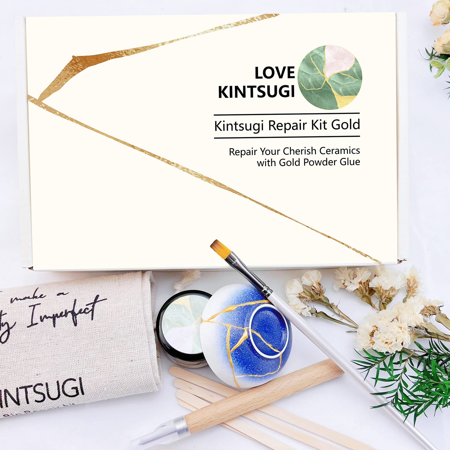 - Versatile application: Our bio kintsugi kit works well with different materials, such as glass, wood, marble, concrete and more. You can use it to fix anything from vases, plates, bowls, mugs, statues, ornaments and more. You can also use it to decorate your items with golden patterns and designs using the kintsugi technique.
