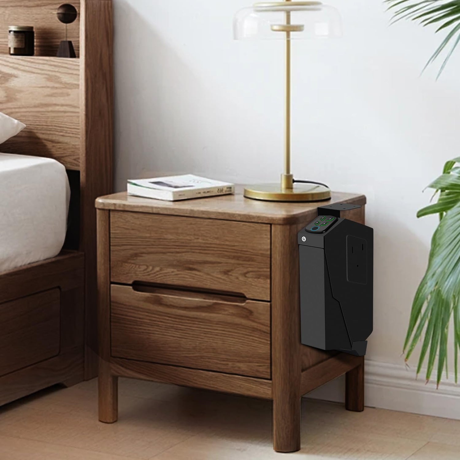 Biometric Handgun Gun Safe for Nightstand, Desk, Bed Side, Wall,Truck - Auto Open Fingerprint Hidden Safe for Pistols -with Fingerprint, Backlit Keypad, KEY Access