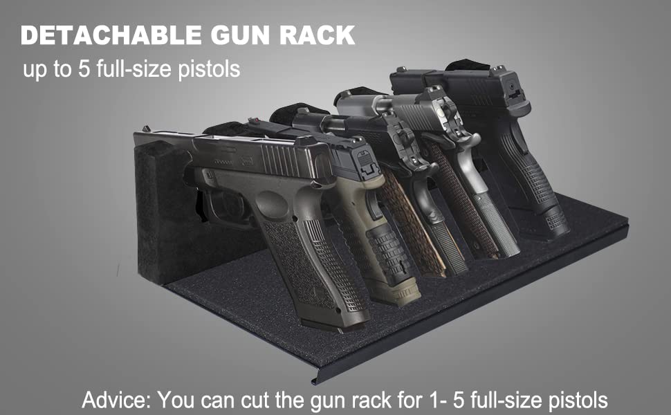 - ✅【Smart Capacity, Removable Handgun Rack】: This cabinet safe has 2.05 cubic feet, Product exterior size-13.75" x 13" x 19.7"(W*D*H). It gives you enough capacity for storing handguns, important documents, jewelry, and other valuables. We specailly designed a 5-position handgun rack. If you do not store pistols, you can remove it or cut it to fit less pistols.. Weight: 40.7 lbs.