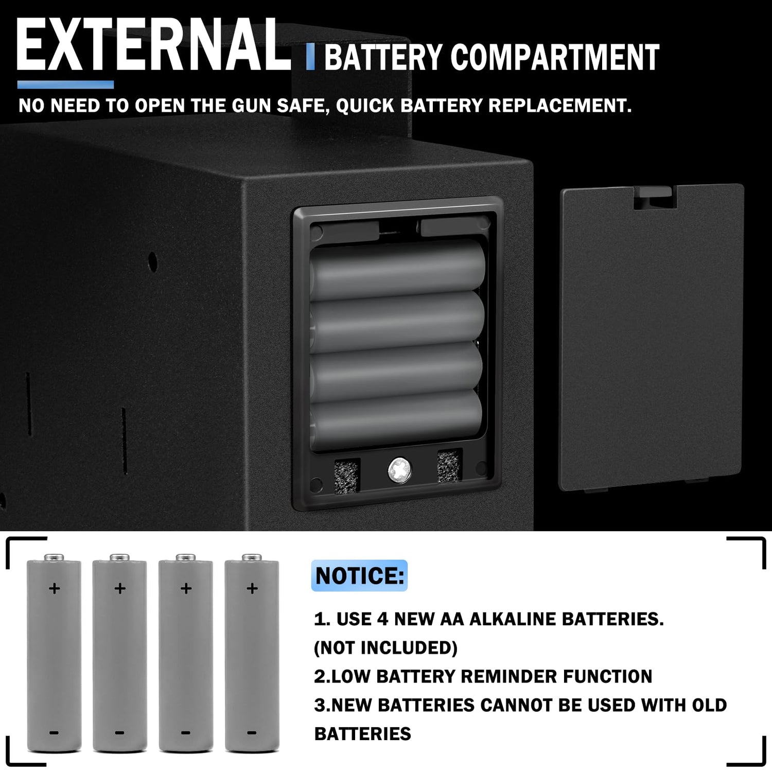 - 【Gun safe & After-Sales Guarantee】The low battery reminder function ensures that you can replace the battery in time to maintain normal operation.In the event of any product questions or issues, our responsive customer service team is available to assist you and guarantees a resolution within 24 hours