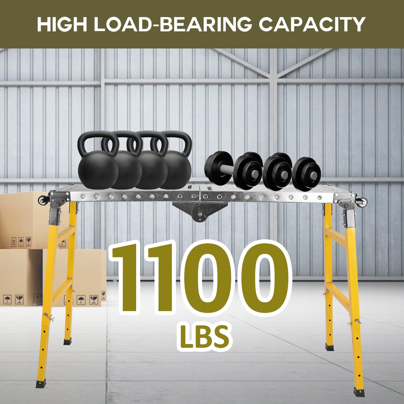 biosp Portable Steel Work Bench, Adjustable Height Welding Table with Folding Legs, Versatile Work Platform with Casters, Carrying Handle, 14 x 56-inch Tabletop, 1100 lbs Load Capacity