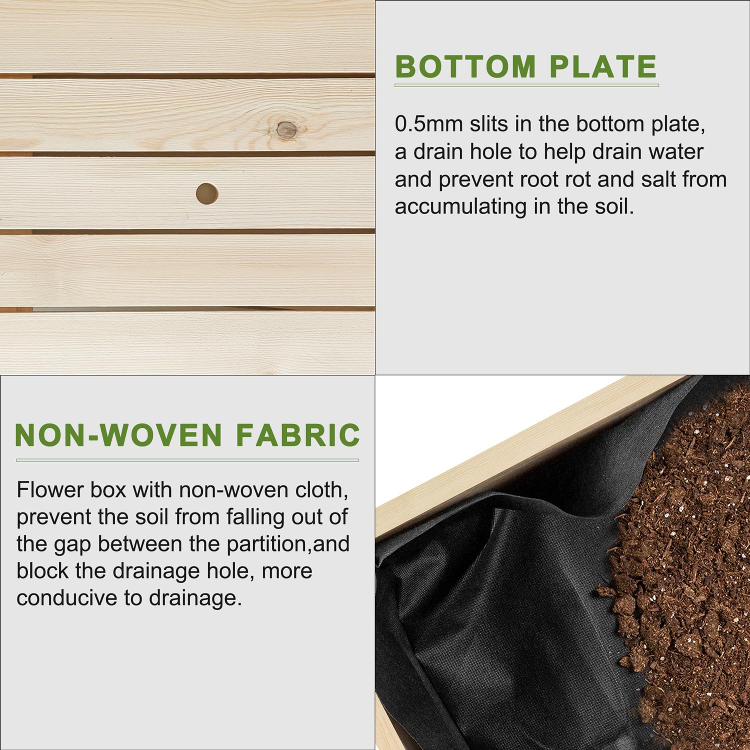 - Dimension & Sturdy Construction: The planter box is made of non-paint, non-toxic 100% solid fir wood providing a waterproof and weather-resistant structure.
