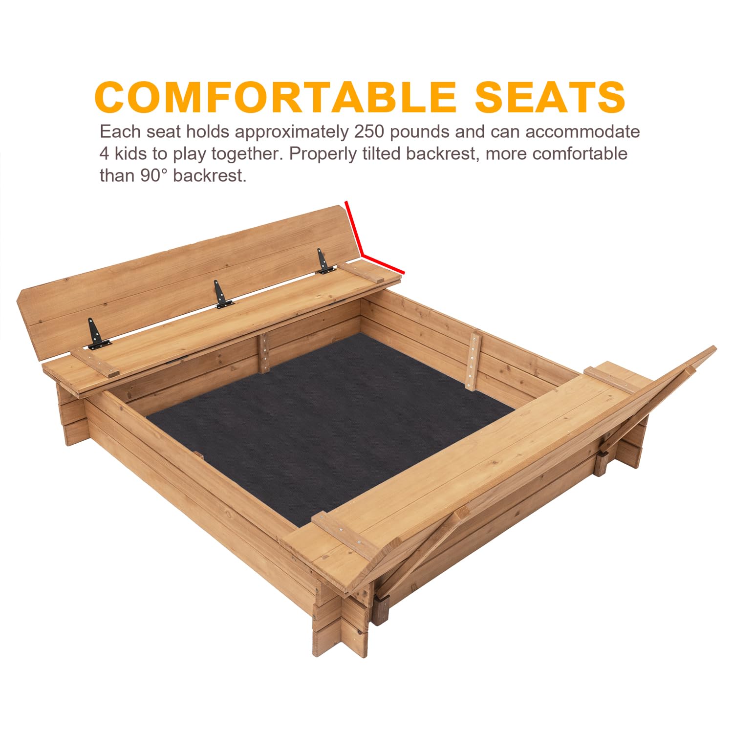 - Sturdy & Durable Material: Our kids sandbox with cover is made of heat-treated high-grade fir wood, which will last for years without being damaged. The board of the sand box is firm, doesn't break with a smooth surface.