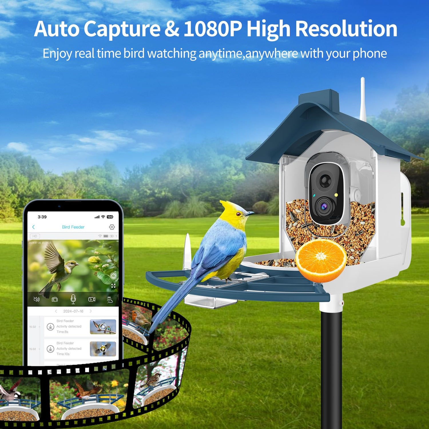 - Watching birds on your phone anywhere, anytime: The smart bird feeder with a camera automatically captures all visiting birds, and you'll receive real-time notifications of these feathered visitors via the phone app.