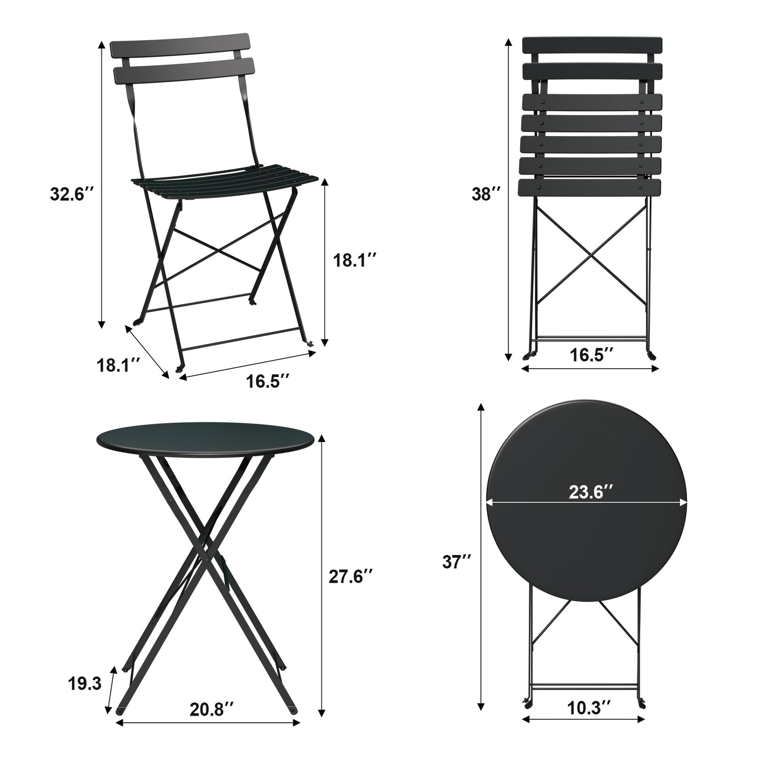 - 【Foldable, Effortless& Portable】Lightweight and foldable,this patio furniture set is easy to store and transport. Fold up the table and chairs for compact storage in your garage or shed, or quickly move it inside or outside for morning coffee, breakfast, or entertaining guests. When not in use, set up and reclaim your space in seconds, ideal for limited spaces or frequent outdoor rearranging. The ergonomic chairs offer comfort, and the table is perfectly sized for intimate dining or conversation