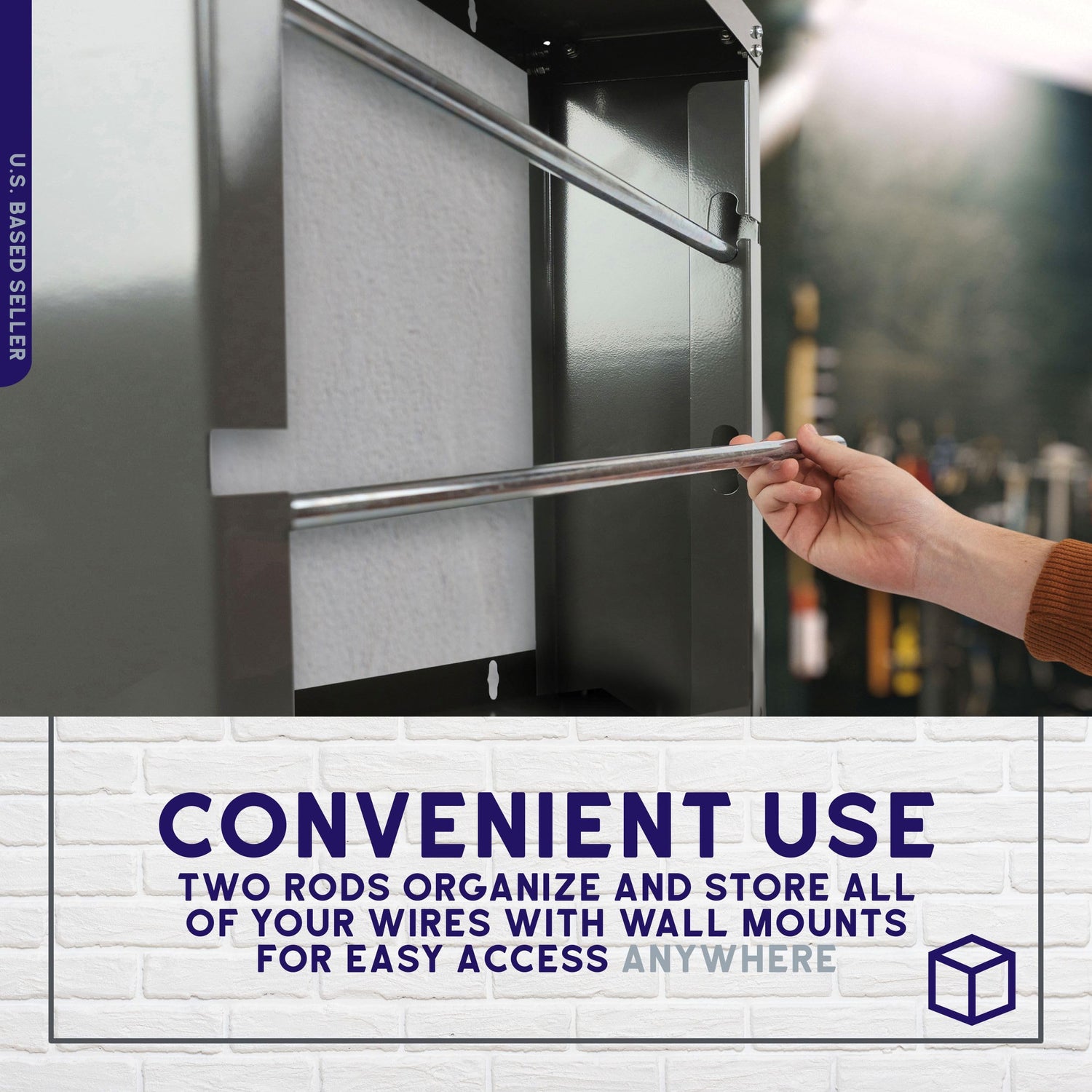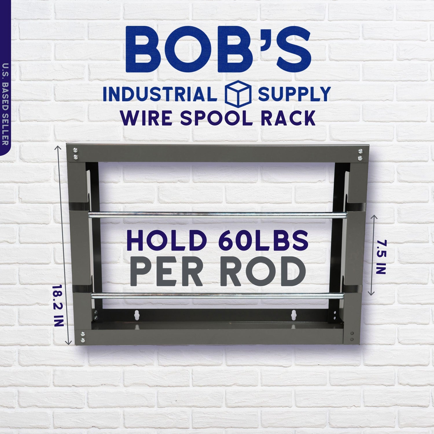 BISupply Wall Mount Electrical Wire Spool Rack Holder - 2 Rod Cable Rack for Ribbon, Filament, Automotive Wiring Storage