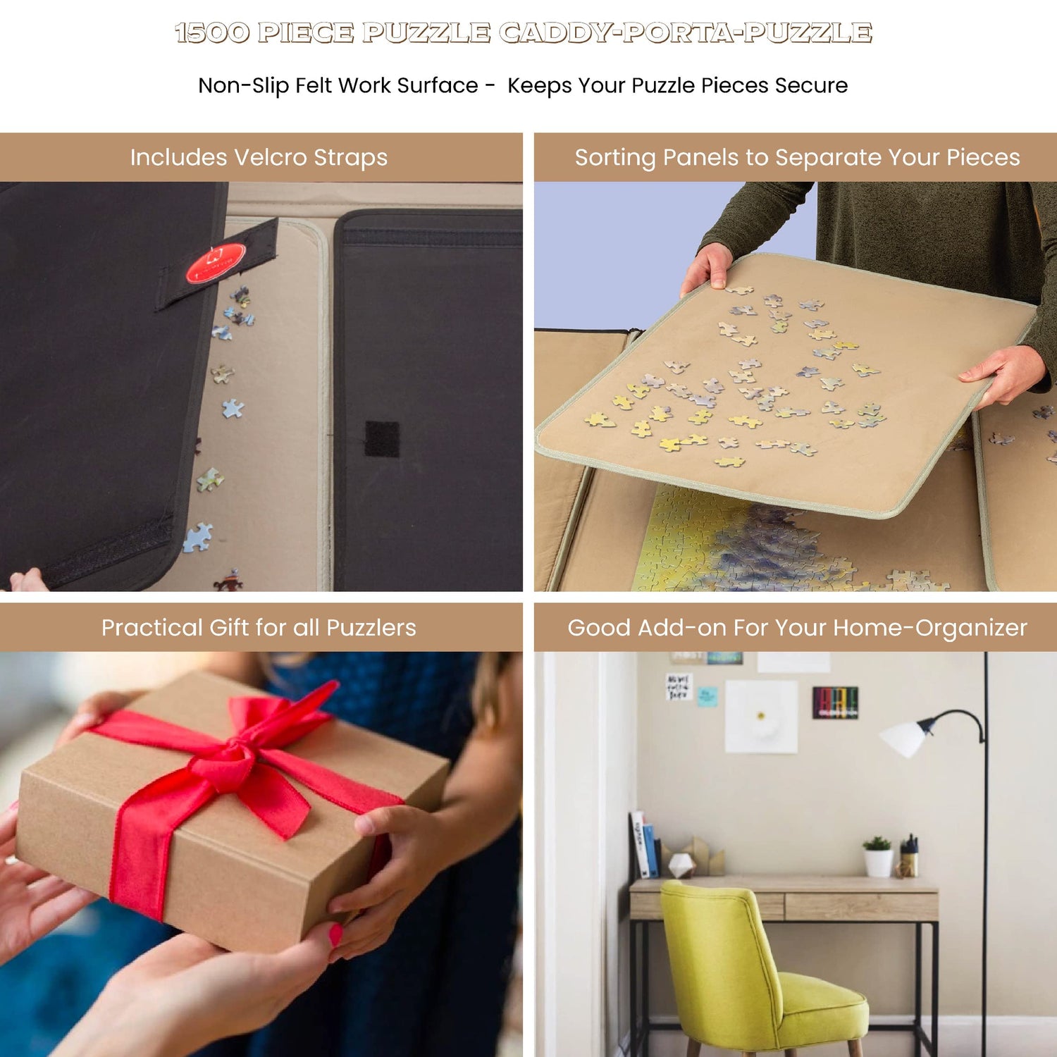 - 1500 Piece Porta-Puzzle: Portfolio Caddies are great to build, sort, store and transport your puzzle. Each has a lined assembly surface, tight closure system and sorting panels to separate your pieces