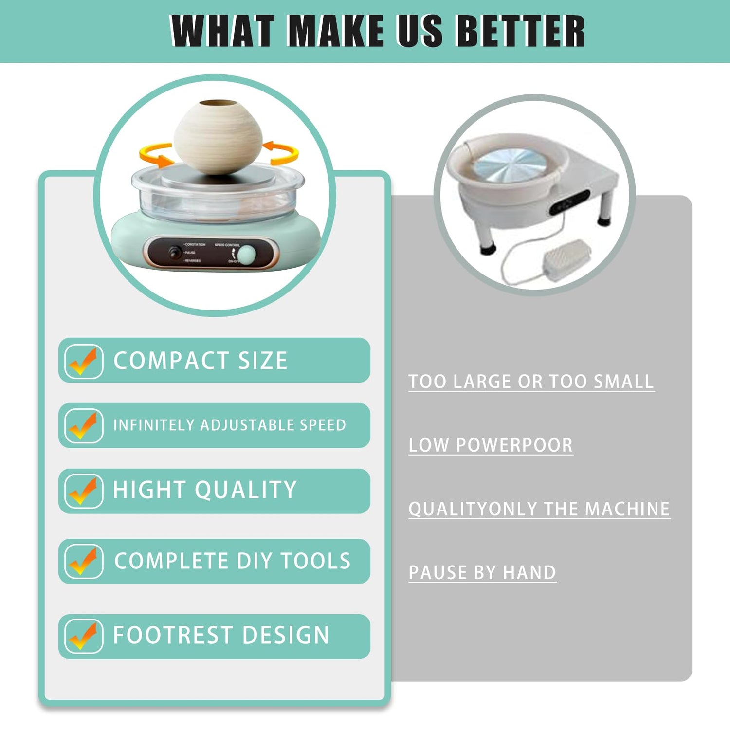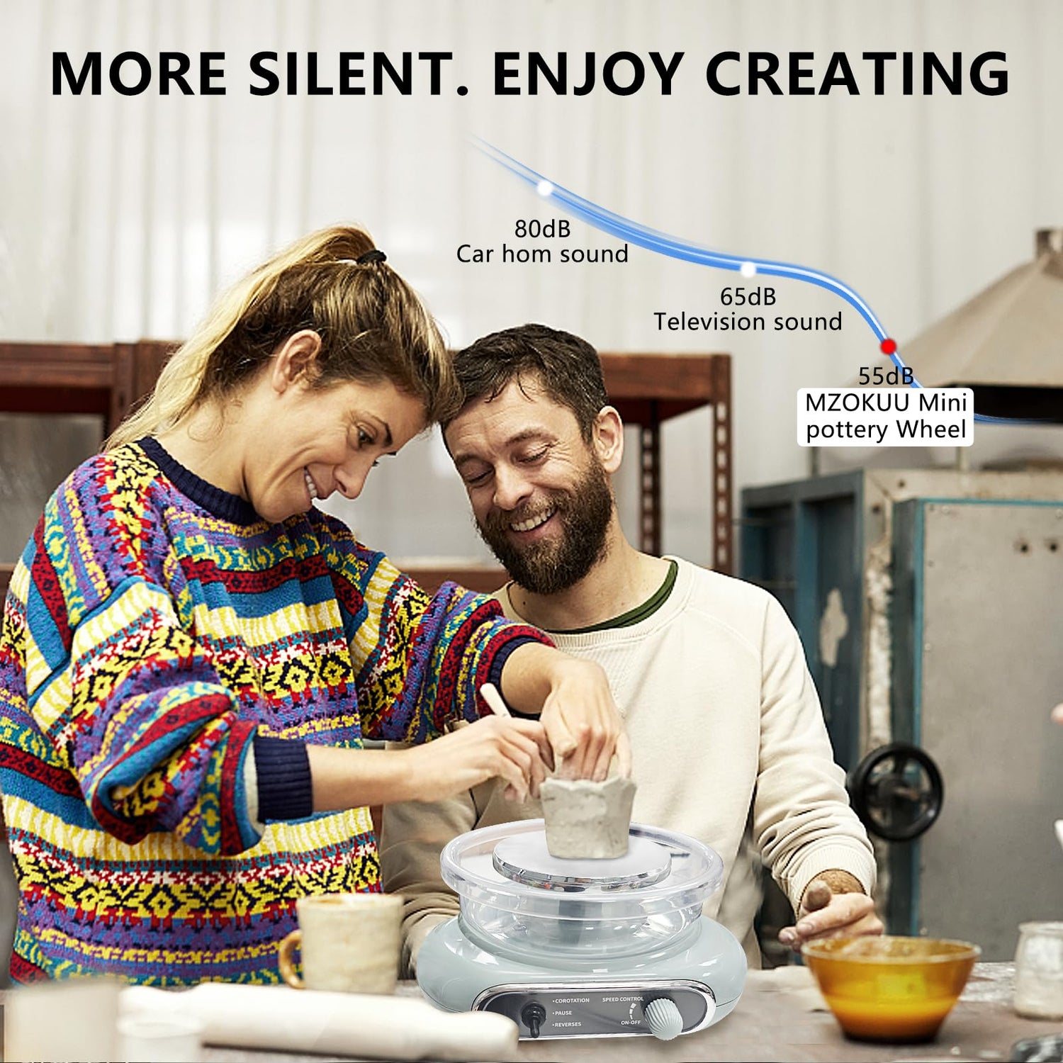 - 【EASY TO CLEAN, GOOD CARE, MORE TIME & MIND SAVING] 30w stable power supply, let you enjoy your art creation. Removable ABS protective basin prevents splashing and keeps it clean, also easy to clean. Our mini pottery wheel has a removable basin and turntable for effortless cleaning and drying