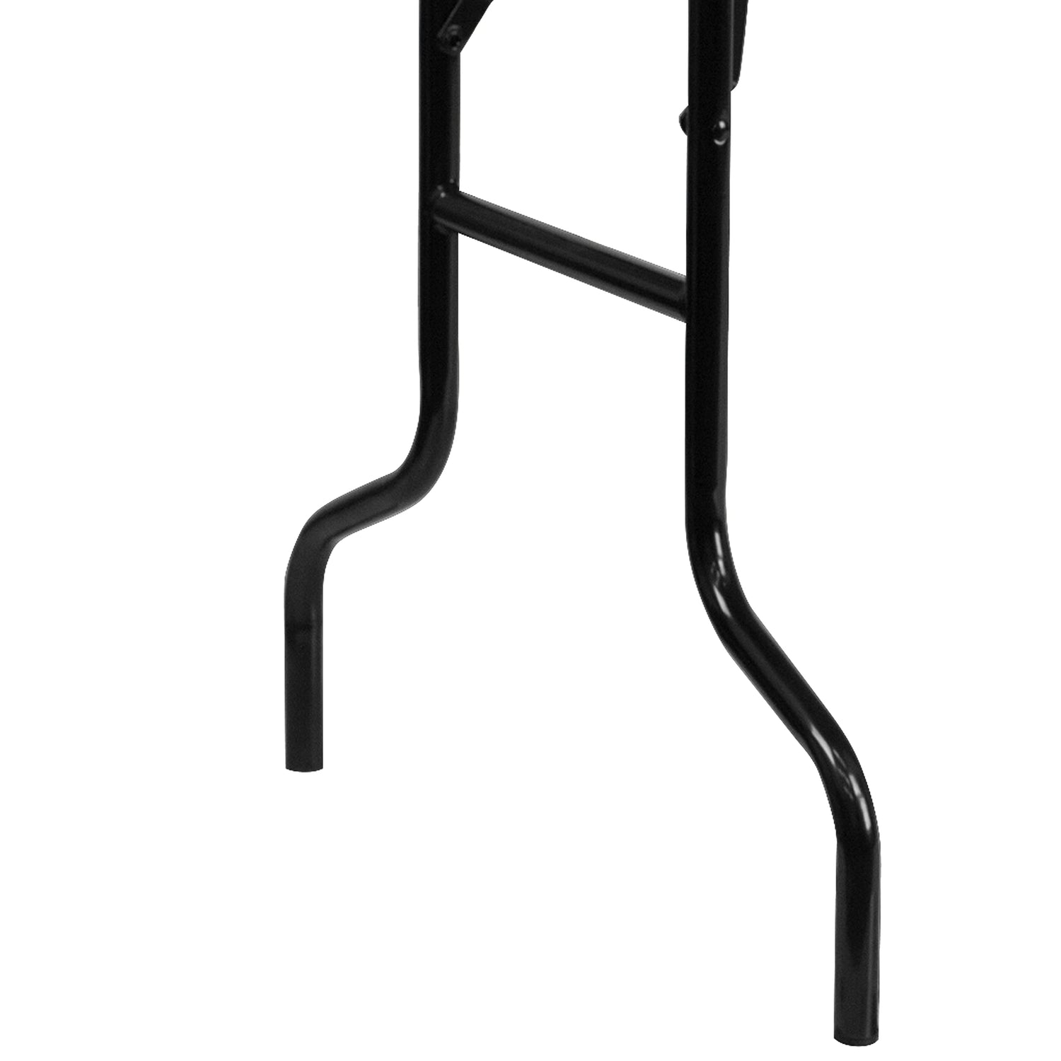Details: 'If you want a table that is sturdy, long-lasting and versatile enough to use anywhere this heavy duty folding table is as good as it gets! The Rectangular Wood Folding Banquet Table is a commercial grade table that can be used as a training table, trade show booth, or a banquet table. Featuring an Okoume hardwood surface, this table is 6 feet long, 3 feet wide and .75 inches thick, with a blackedge band. It has a 580 pound static load capacity and will seat up to 8 adults. Its durable, easy to clean tabletop is sealed with a quadruple coated polyurethane varnish. The underside of the table is finished with a double coated polyurethane varnish. Two heavy duty, wood runners, secured to the underside of the table, increase load capacity and allow for more secure stacking, transport and storage. The heavy duty wishbone legs lock securely in place when the table is in use. A black powder coating protects the legs from scratches, and non-marring floor caps protect your floor. This is a particularly good choice for party rental companies and other organizations that hold many events throughout the year.