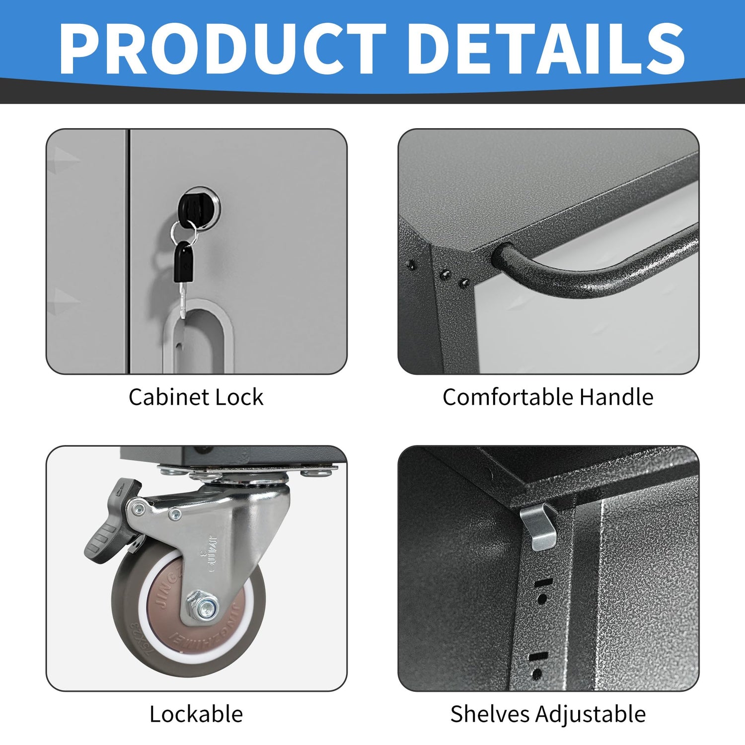 - ROLLING STORAGE CABINET: The rolling storage cabinet comes with 4 wheels that make it easy to move it in any direction, while the wheels come with a locking function that secures the cabinet when it is moved to a designated position.