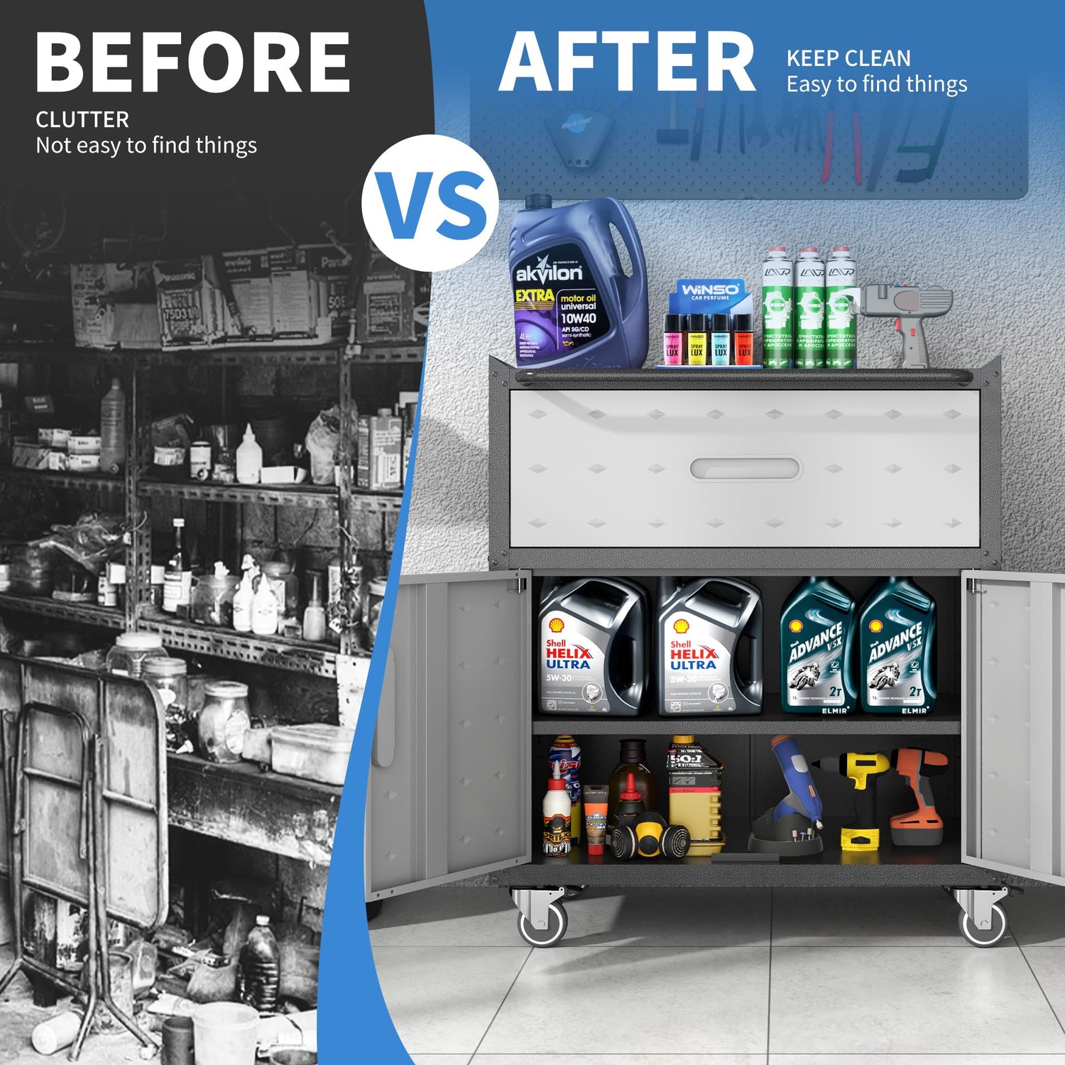 - STURDY & DURABLE: This storage cabinet with wheels is made of high-quality steel plate which is processed and assembled to be strong and stable, with high load-bearing capacity, suitable for storing heavy tools and equipment. Meanwhile, the cabinet is made with anti-rust process to ensure that it will not rust for a long time.
