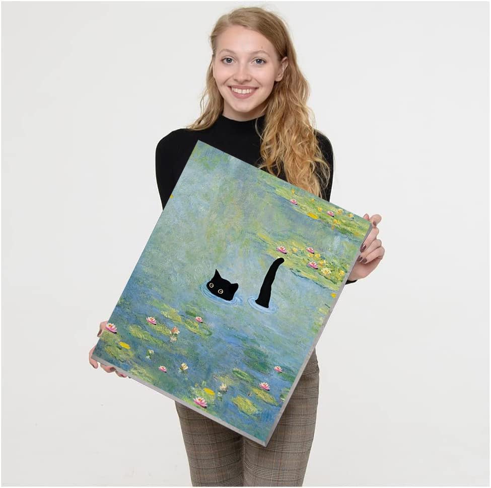 Black Cat Pond Paint by Numbers Kit for Adults with Framed - Paint by Number with Wooden Easel DIY Nice Box Acrylic Oil Painting,for Wall Decor 8x12inch
