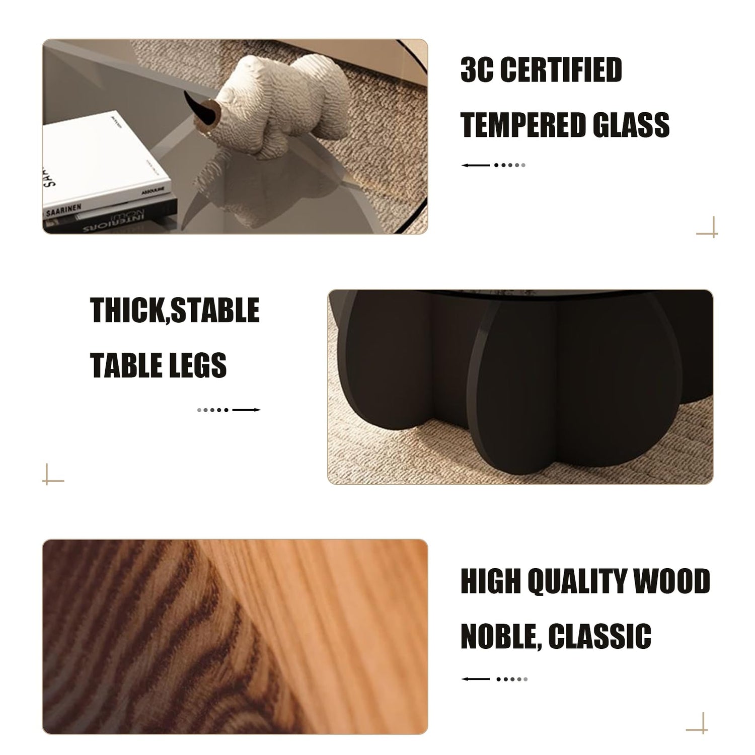 - ✨SAFE TEMPERED GLASS TABLETOP: Crafted with quality in mind, our center table boasts an 8mm thick tempered glass surface that is resistant to both breaking and scratching.