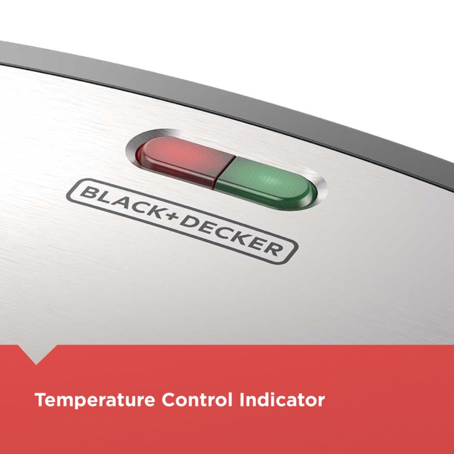 Details: Make all the breakfast classics with the BLACK+DECKER 3-in-1 Morning Meal Station! The compact design includes interchangeable cooking plates to function as a Waffle Maker, Grill, or Sandwich Maker. All the plates are nonstick and dishwasher-safe for easy cleanup, and include grease run-off channels for fast grease removal. The temperature indicator lets you know when the plates are preheated, and the cool-touch handles make it easy to open and close the appliance during cooking.