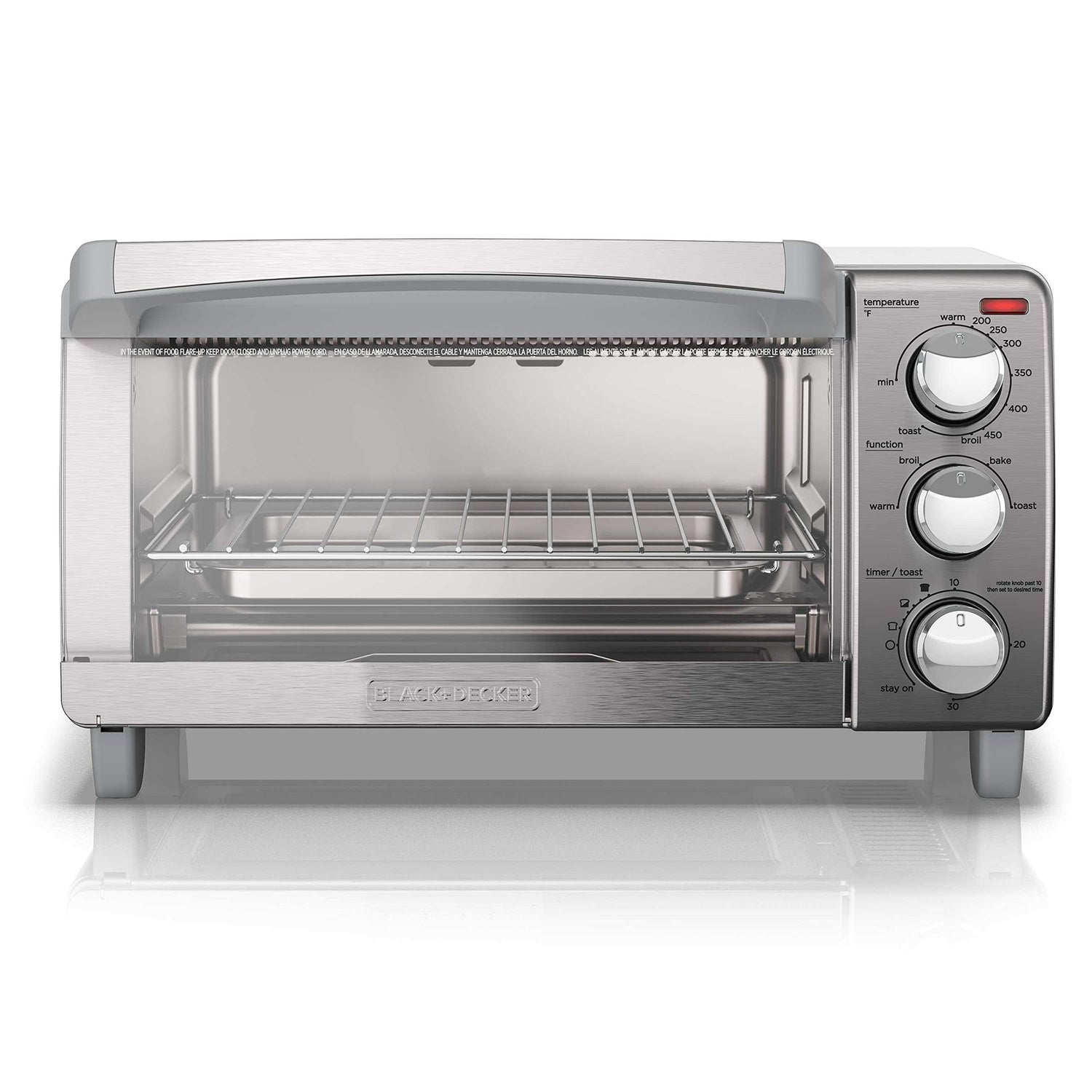 BLACK+DECKER 4-Slice Toaster Oven, TO1745SSG-1A, Even Toast, 4 Cooking Functions Bake, Broil, Toast and Keep Warm, Removable Crumb Tray, Timer