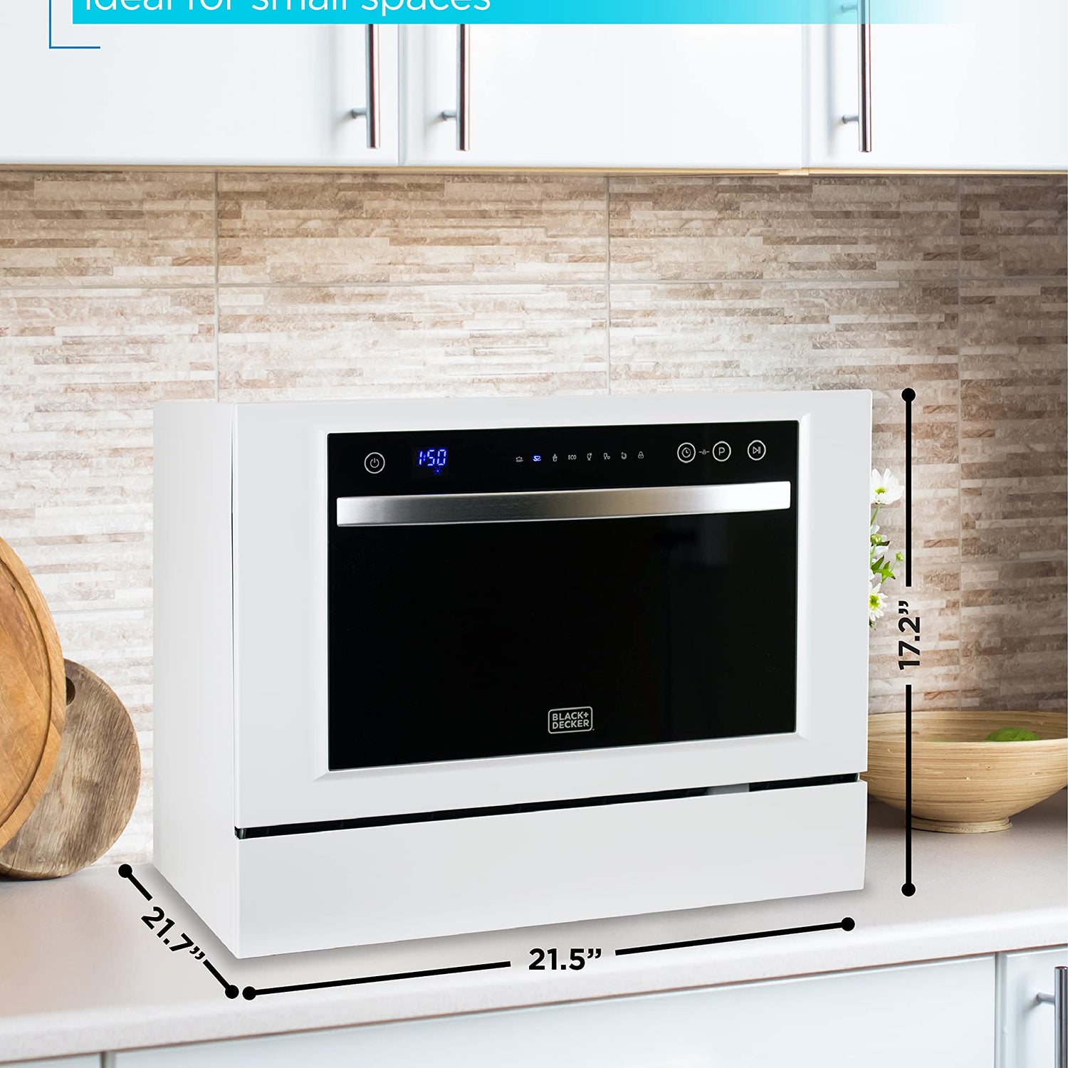 - 7 SUPERIOR WASH CYCLES: With this incredible BLACK+DECKER portable dishwasher, you find the right wash cycle that works for you and your dishes. Our 7 wash cycles for this 21.5” x 21.7” x 17.2” dishwasher machine include: Normal, Intensive, Eco, Glass, 90 Minutes, Rapid & Soak. Save water and time in the kitchen cleaning by letting this stainless steel dishwasher do all the hard work.