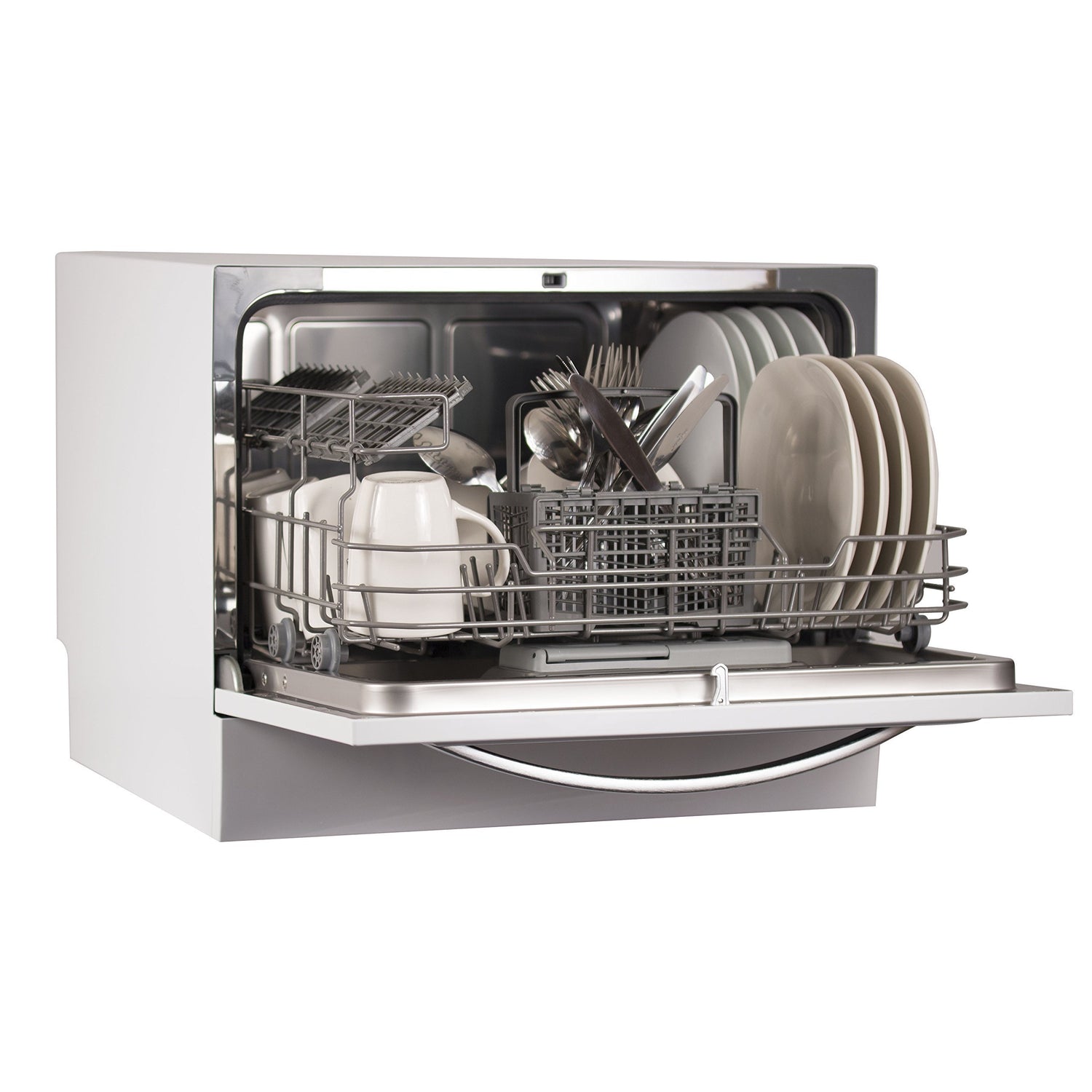 - IMPRESSIVE CAPACITY: This dishwasher portable ensures you can fit up to 6 place settings at one time. Plates, bowls, saucers, mugs, cups, wine glasses and utensils can be safely and securely positioned for a wash cycle of your choice.