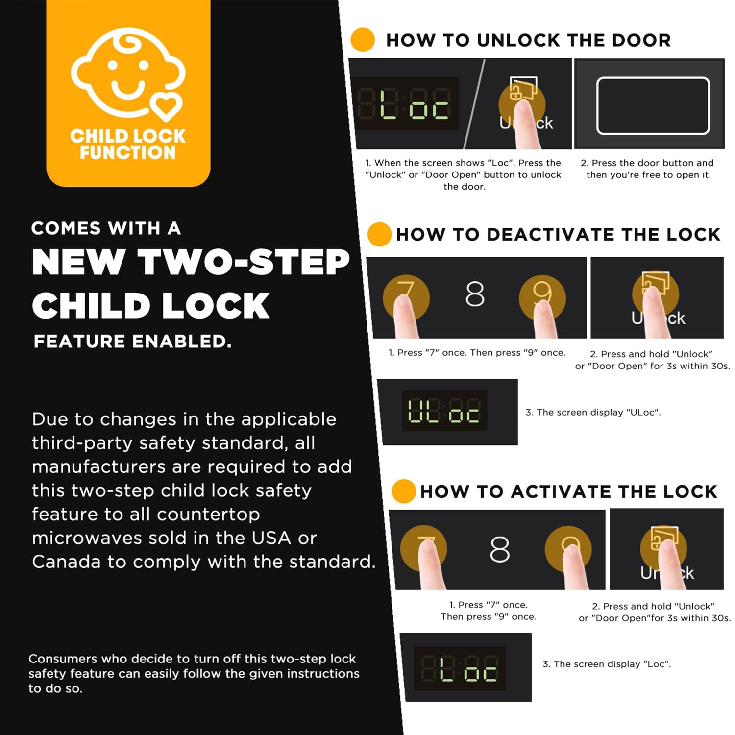 • USER-FRIENDLY DESIGN: enjoy enhanced safety and convenience with our microwave's child safety lock, a kitchen timer and a memory function for quick recalls of your favorite settings