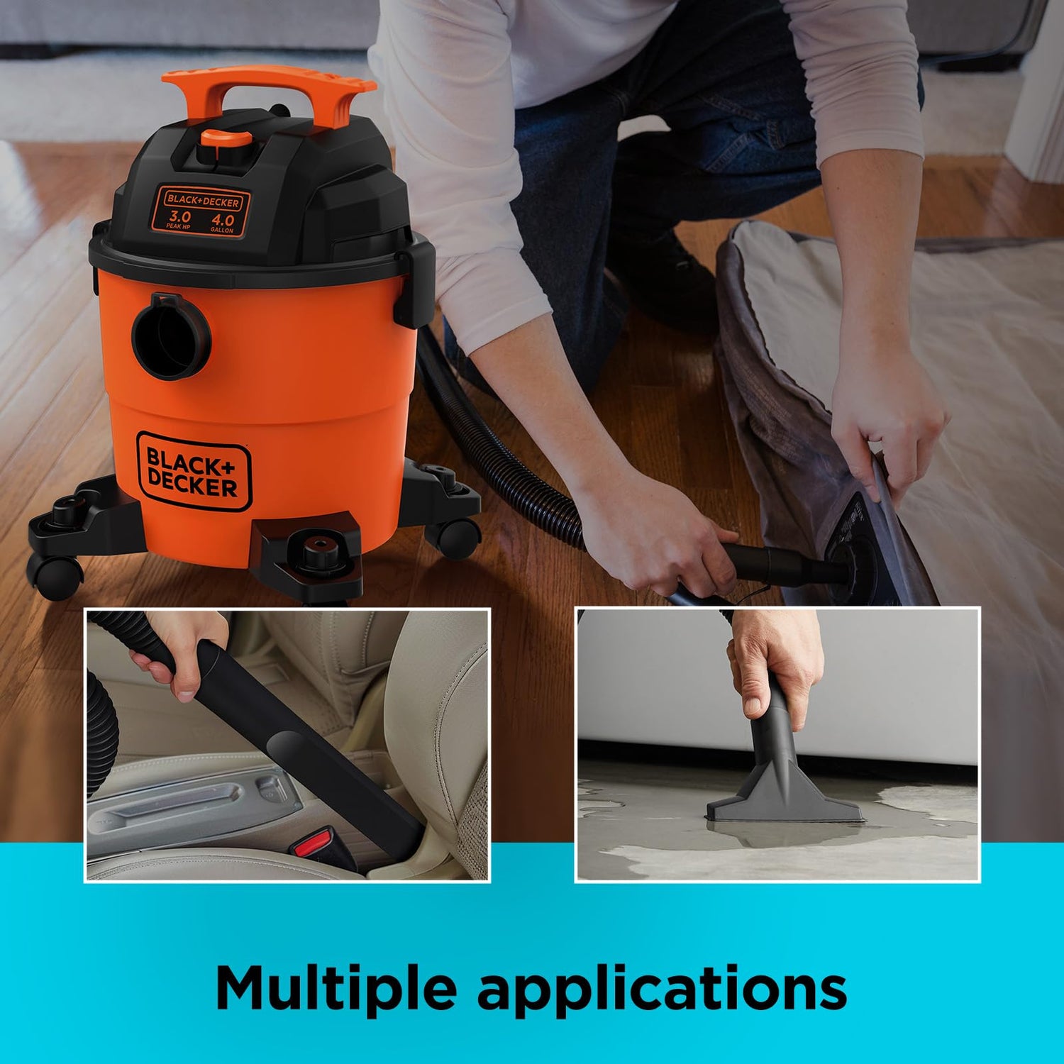 BLACK+DECKER Shop Vacuum Wet and Dry, 4 Gallon 3.0 Peak HP, 3-in-1 Portable Shop Vac with Accessories, Home and Car Vacuum Cleaner(BDXV18301P-4A)