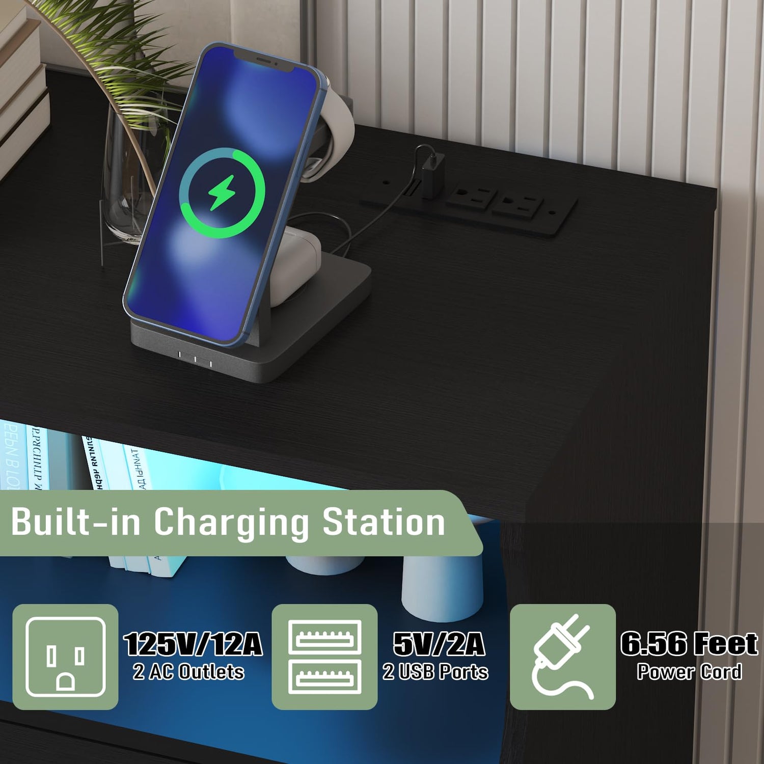 - โ ใ๐๐จ๐ง๐ฏ๐๐ง๐ข๐๐ง๐ญ ๐๐ก๐๐ซ๐ ๐ข๐ง๐ ๐๐ญ๐๐ญ๐ข๐จ๐งใ The led tv stand dresser includes two standard plug outlets and two USB ports, allowing you to charge your mobile devicesโphones, headsets, or desk lampsโright at your fingertips. Enjoy a clutter-free space without tangled cords.