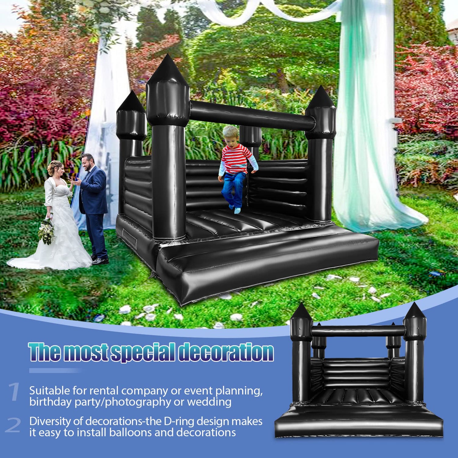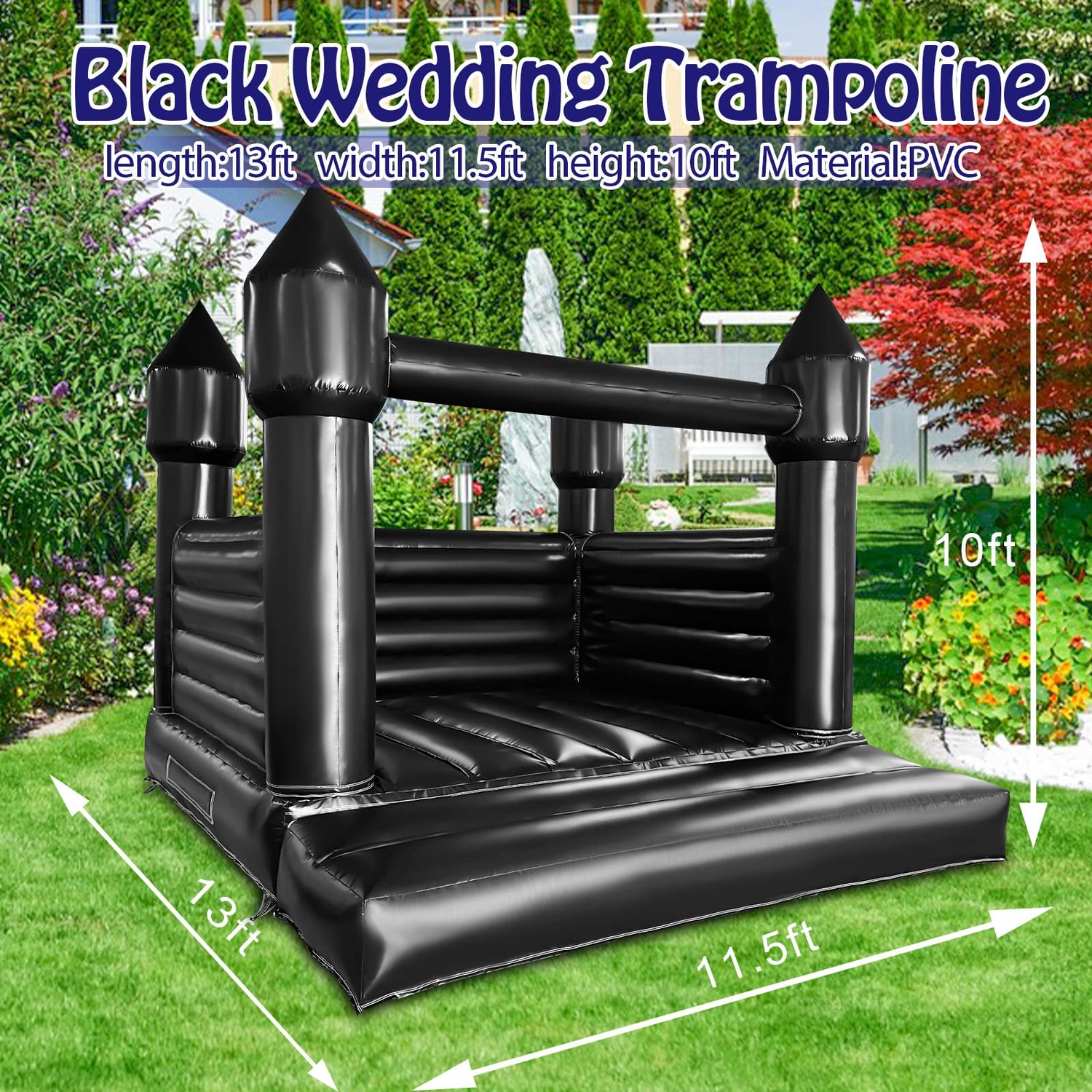 Details: Black Inflatable Bounce House for Outdoor Backyard Wedding Decor with Blower PVC Inflatable Jumper Bouncy Castle House for Kids Bouncy Castle Jumping Bed for Party, 13ft x 11.5ft x 10ft